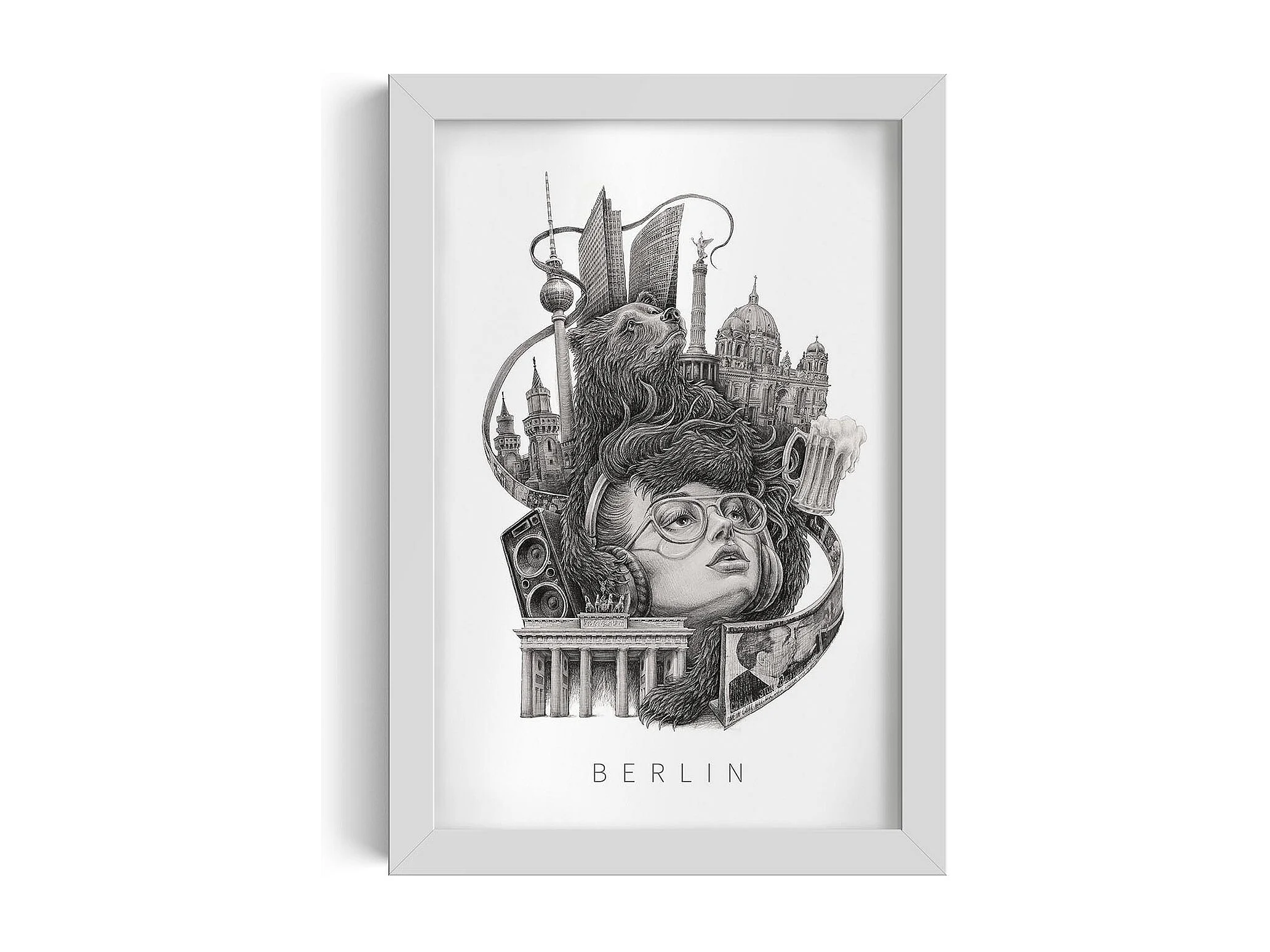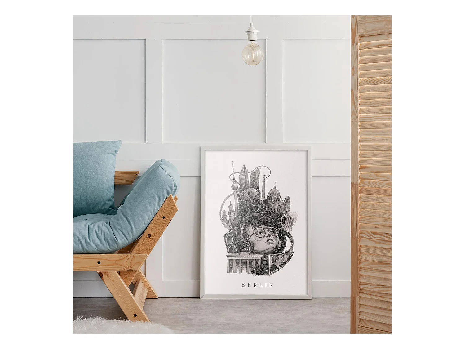 Bild im Rahmen, moderne deutsche Wandkunst, Berliner weiße Rahmenkunst, 20x30 Stadtbild.