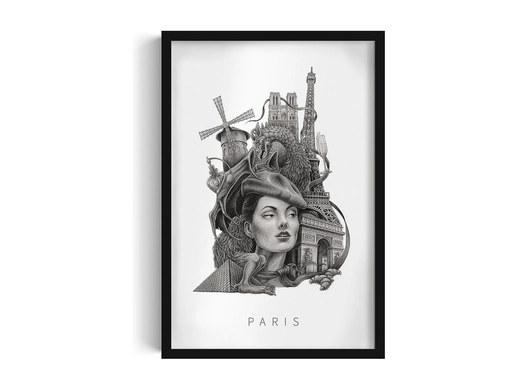 Bild im Rahmen, moderne französische Dekoration, schwarzer Rahmen der Pariser Kunst, minimalistischer Paris-Druck, Paris-Design 40x60 cm.