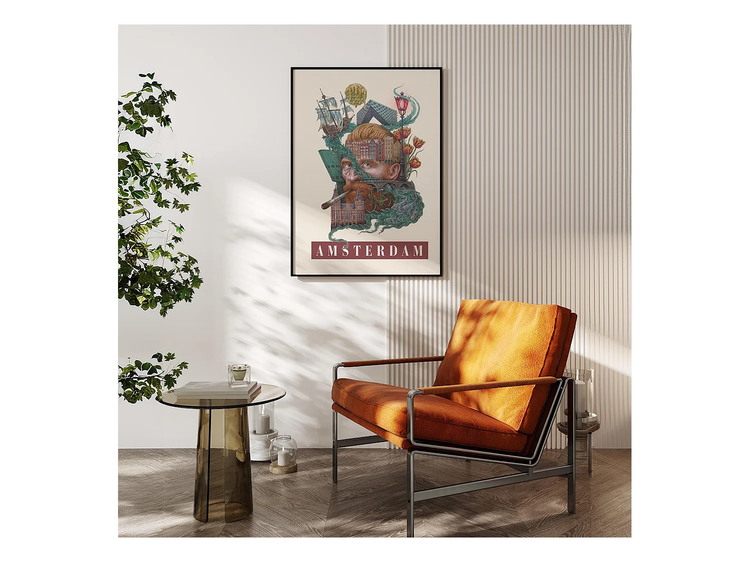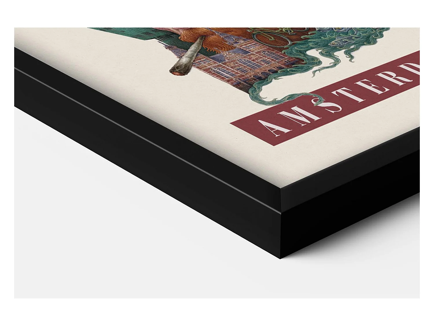 Bild im Rahmen, modernes niederländisches Dekor, schwarzer Rahmen Amsterdamer Kunst, Stadtbild von Amsterdam, Druck 40x60 cm.