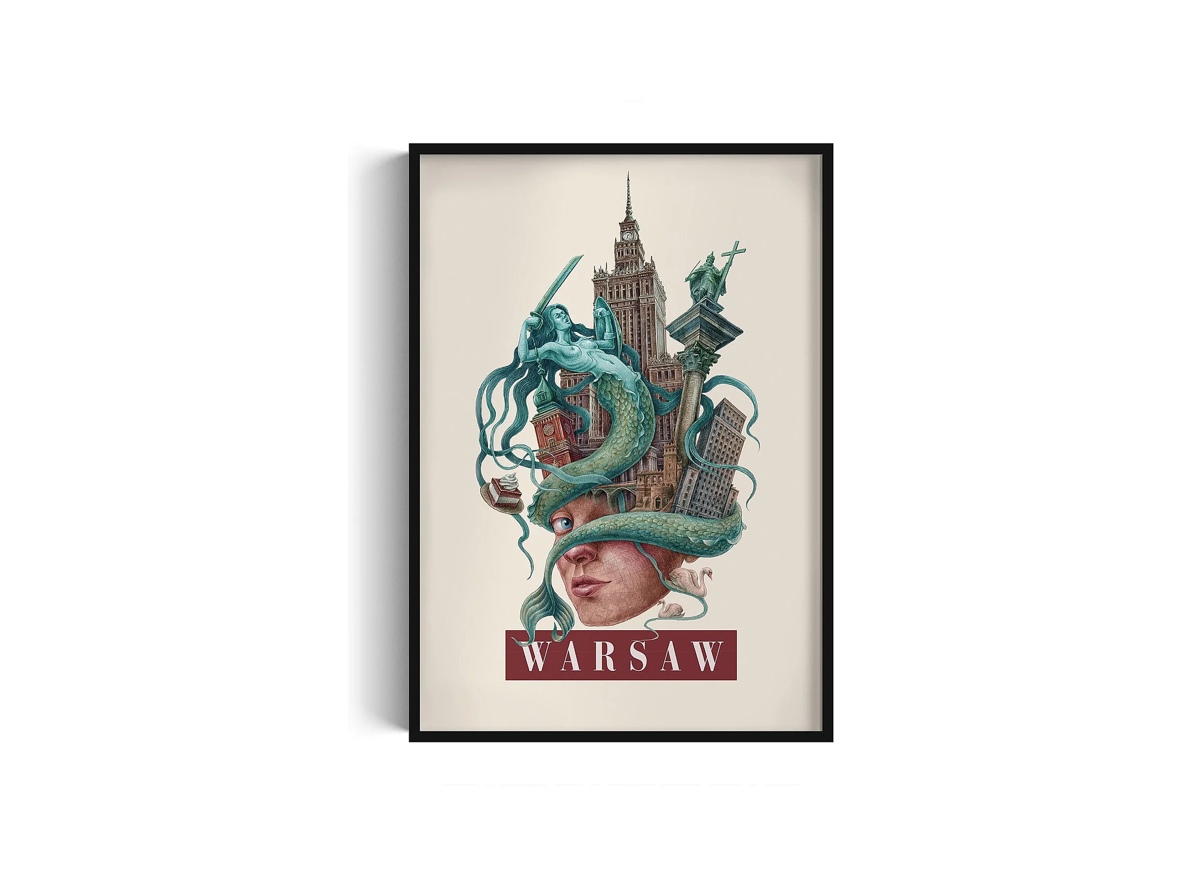 Bild im Rahmen, modernes Stadtdekor, gerahmte Kunst aus Warschau, minimalistischer Stadtdruck aus Warschau, Warschauer Design 70x100 cm.