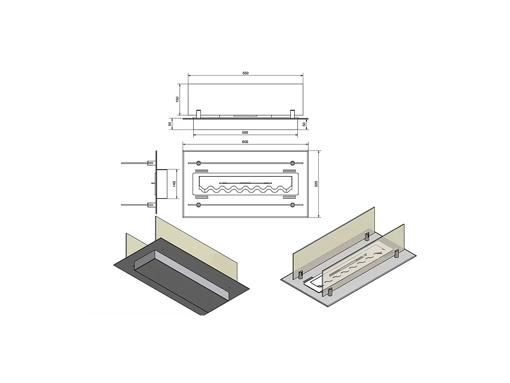 Sololed - Bioethanol-Brennereinsatz/Halterung 60 cm aus Edelstahl mit Gläsern im Lieferumfang enthalten