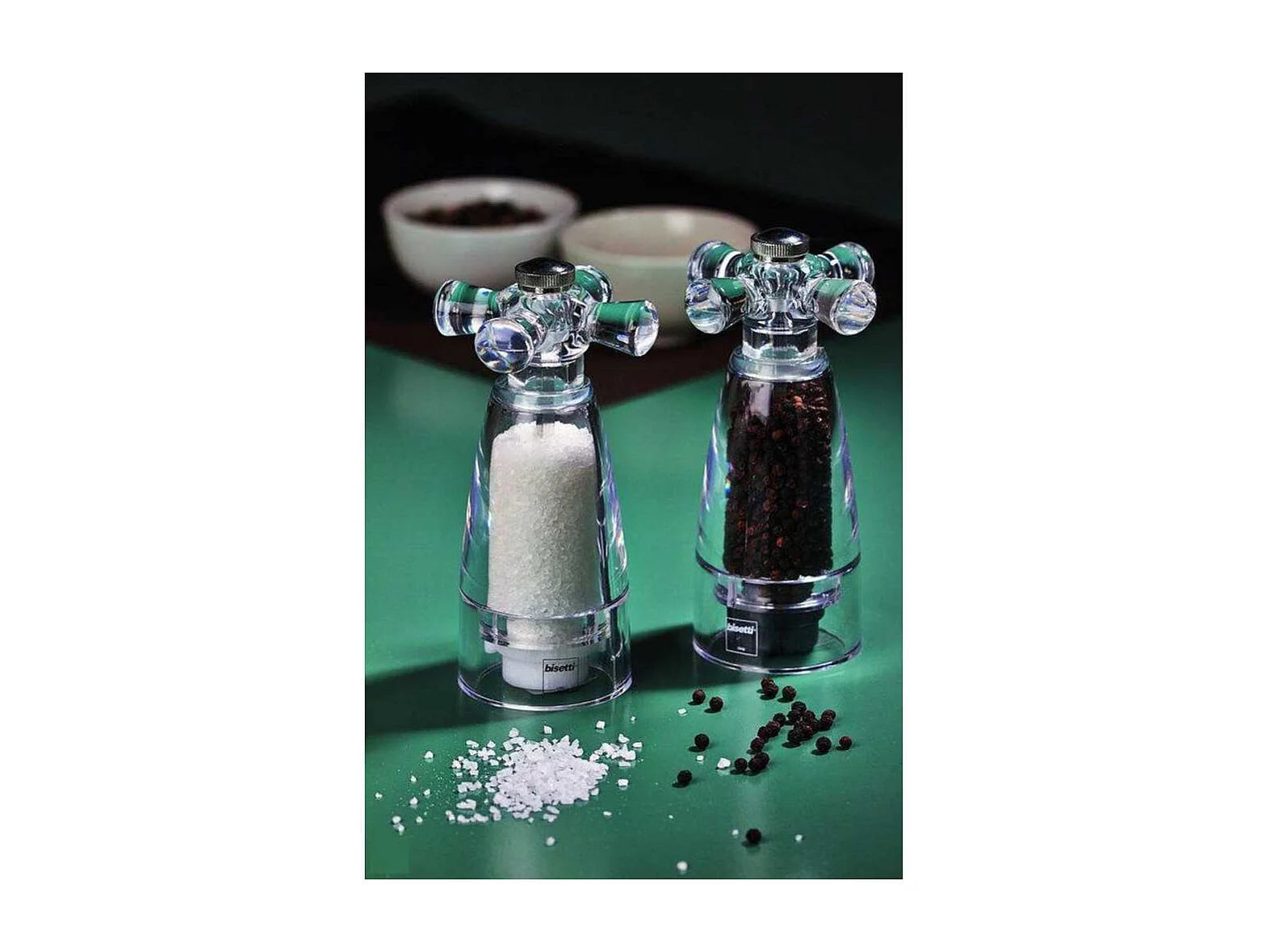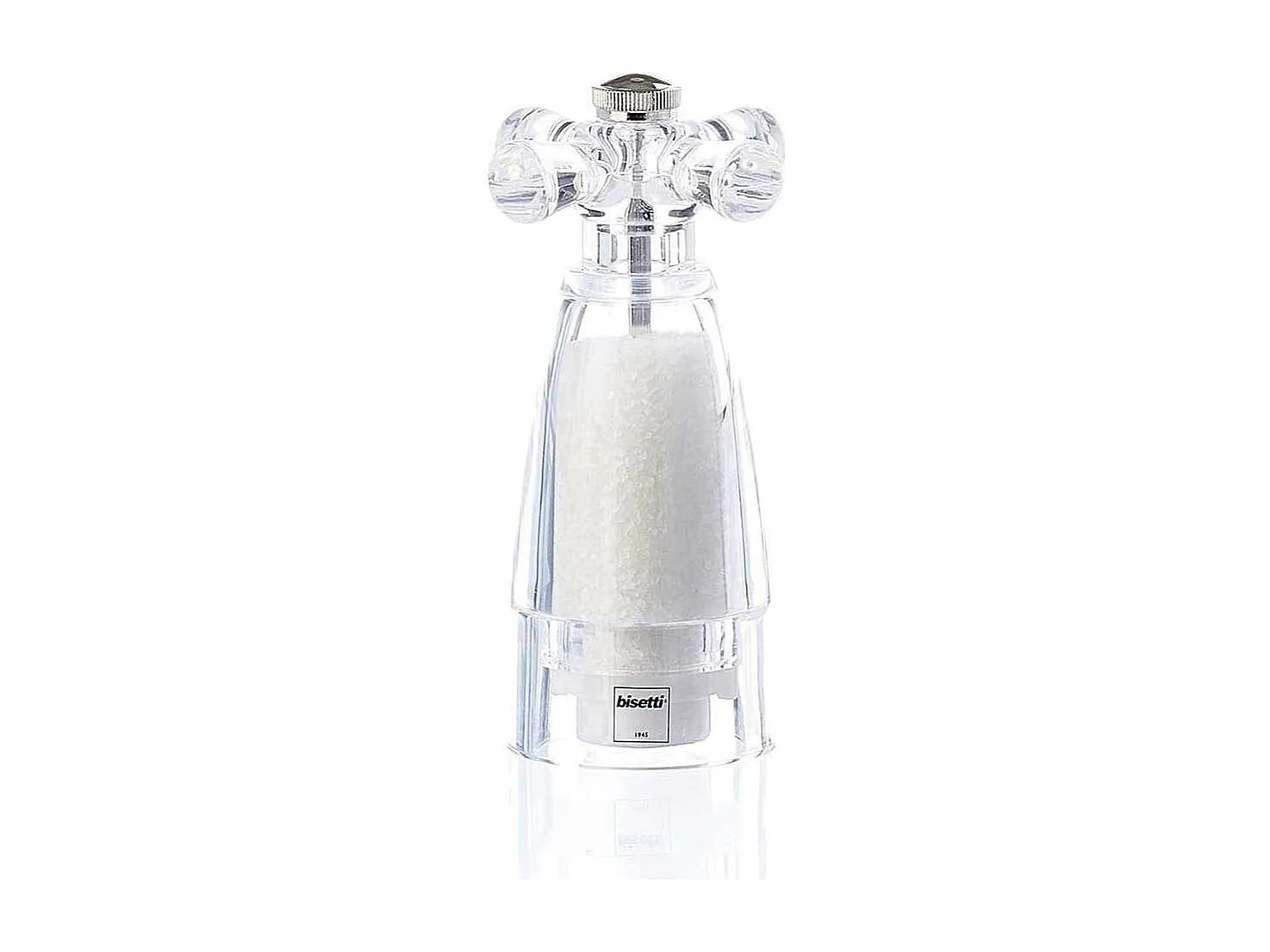 Bisetti Savona Salzstreuer 17,5 cm aus transparentem Acryl, italienische Herstellung, ergonomischer Griff