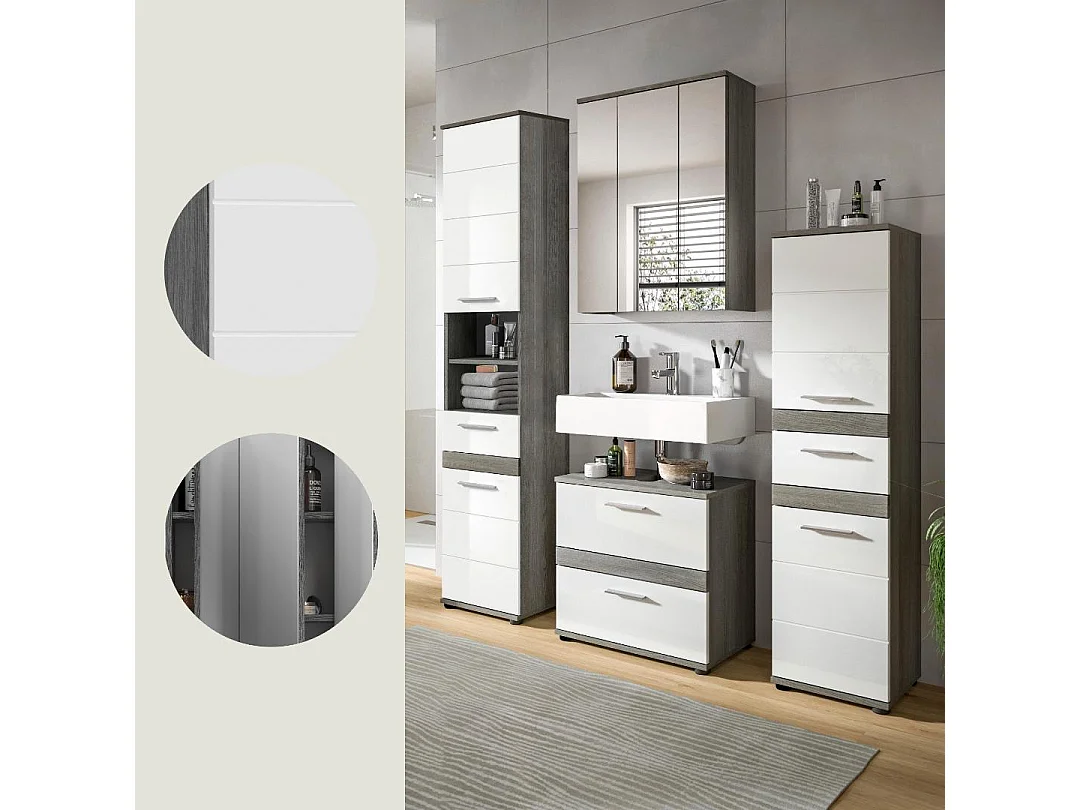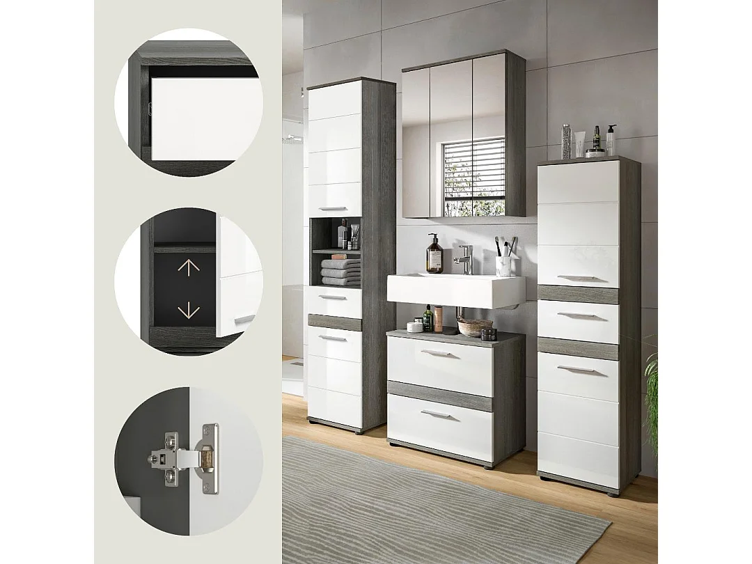 Blake Badmöbelset B4 Weiß hochglanz, grau.