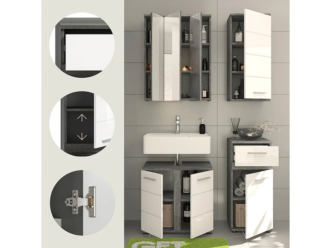 Blake Badmöbelset B8 Weiß hochglanz, grau.
