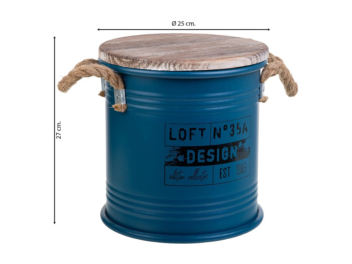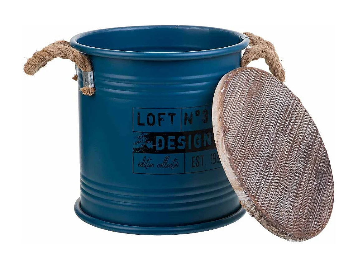 Blau bedruckter Wäschekorb aus Metall, 35x37H cm