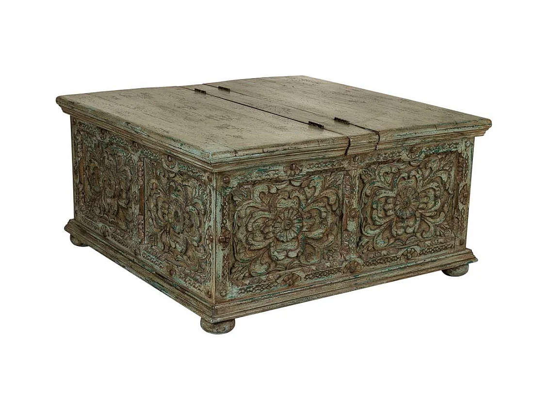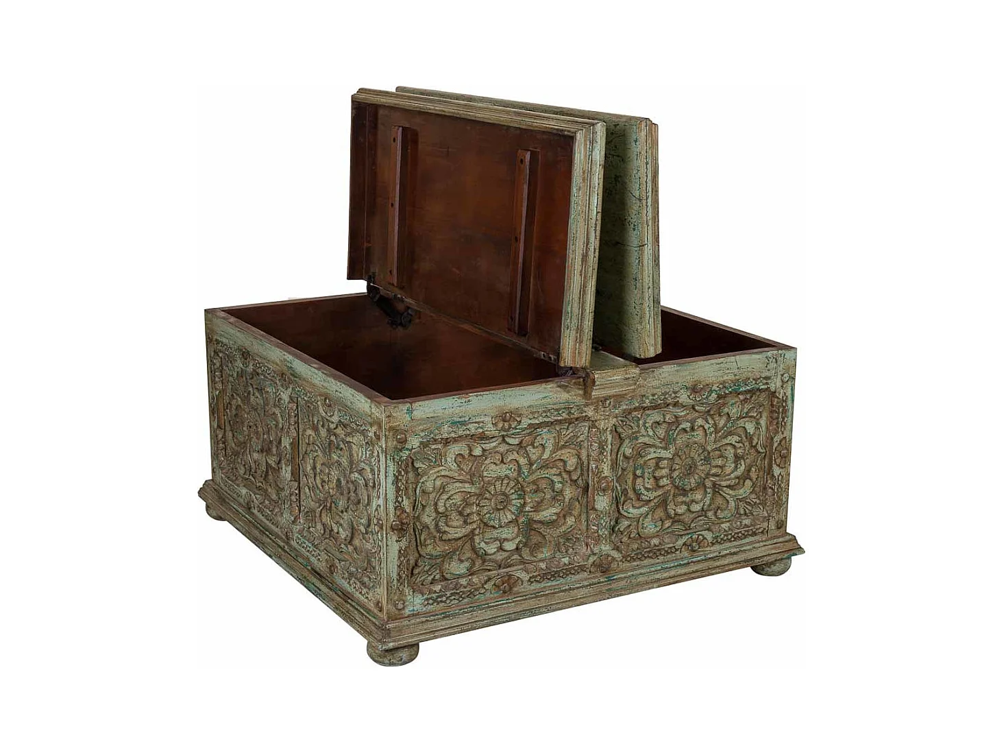 Blauer handgefertigter Couchtisch aus Holz 100x100x47