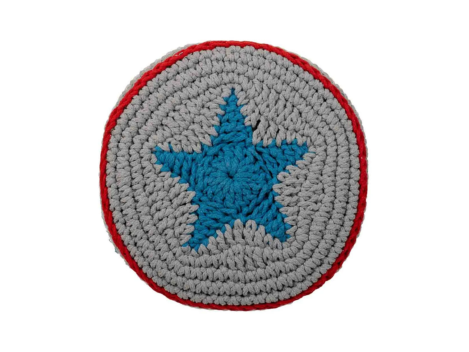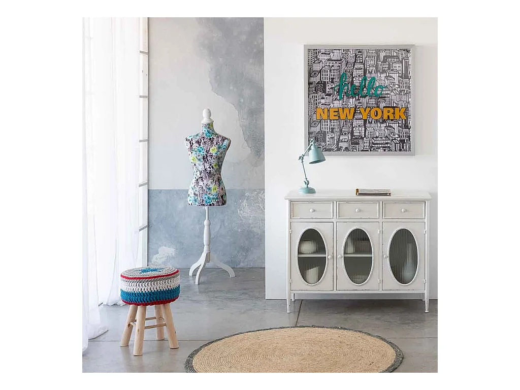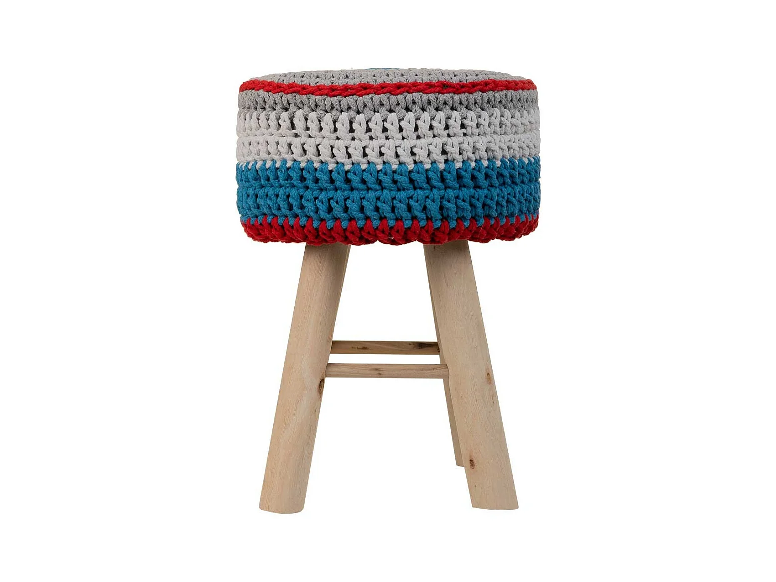 Blauer Hocker aus gewebter Baumwolle und Holz, 32x32x44h cm