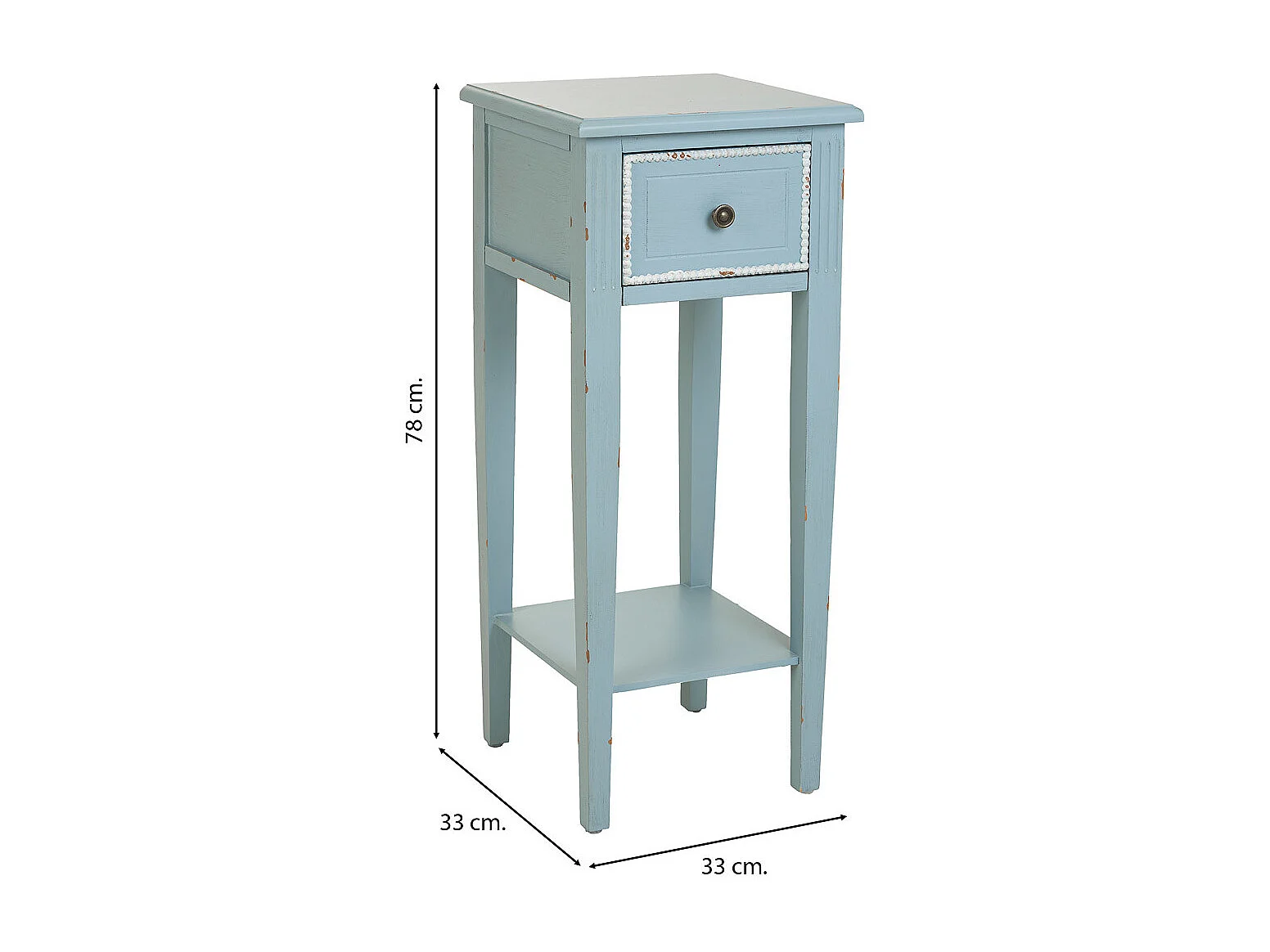 Blauer Holztisch 33x33x78h cm