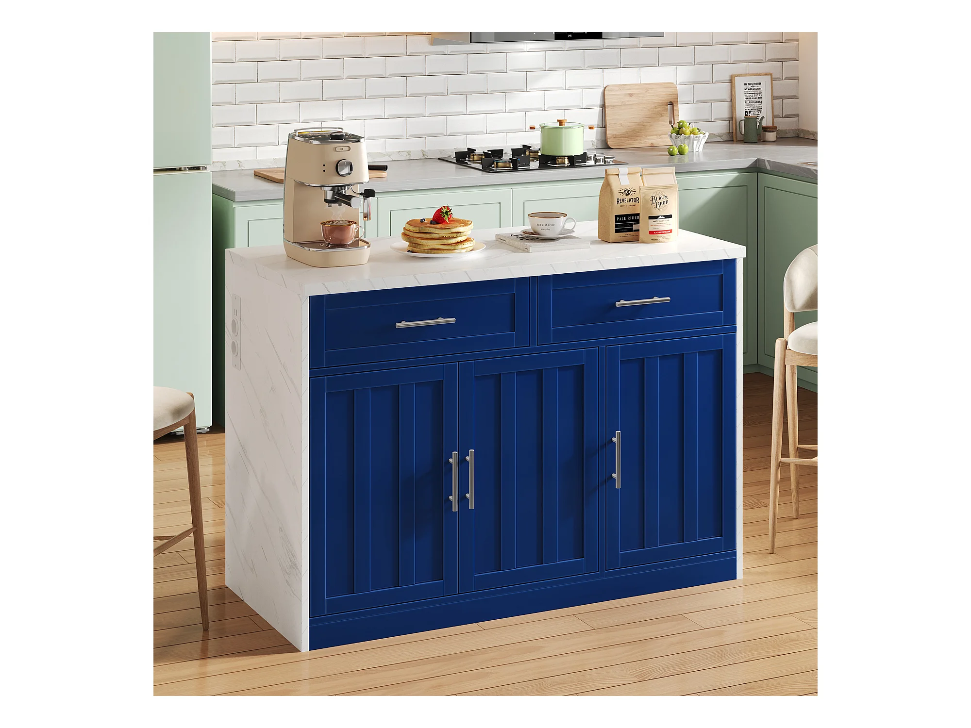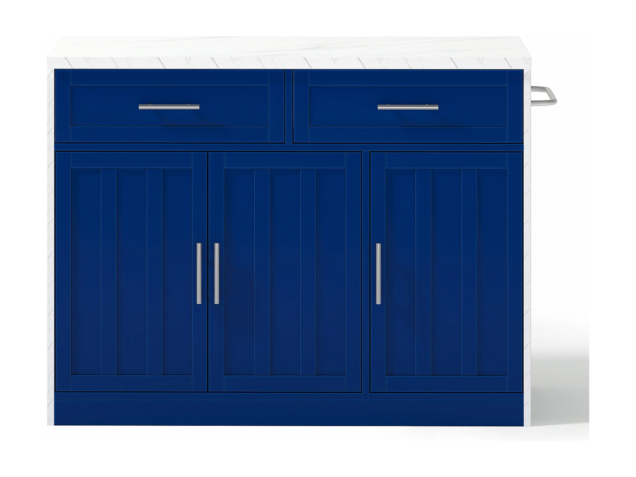 Blauer Küchenwagen – Kücheninsel mit 2 Schubladen und 3 Türen – Handtuchhalter und 1,5 m langes Stromkabel