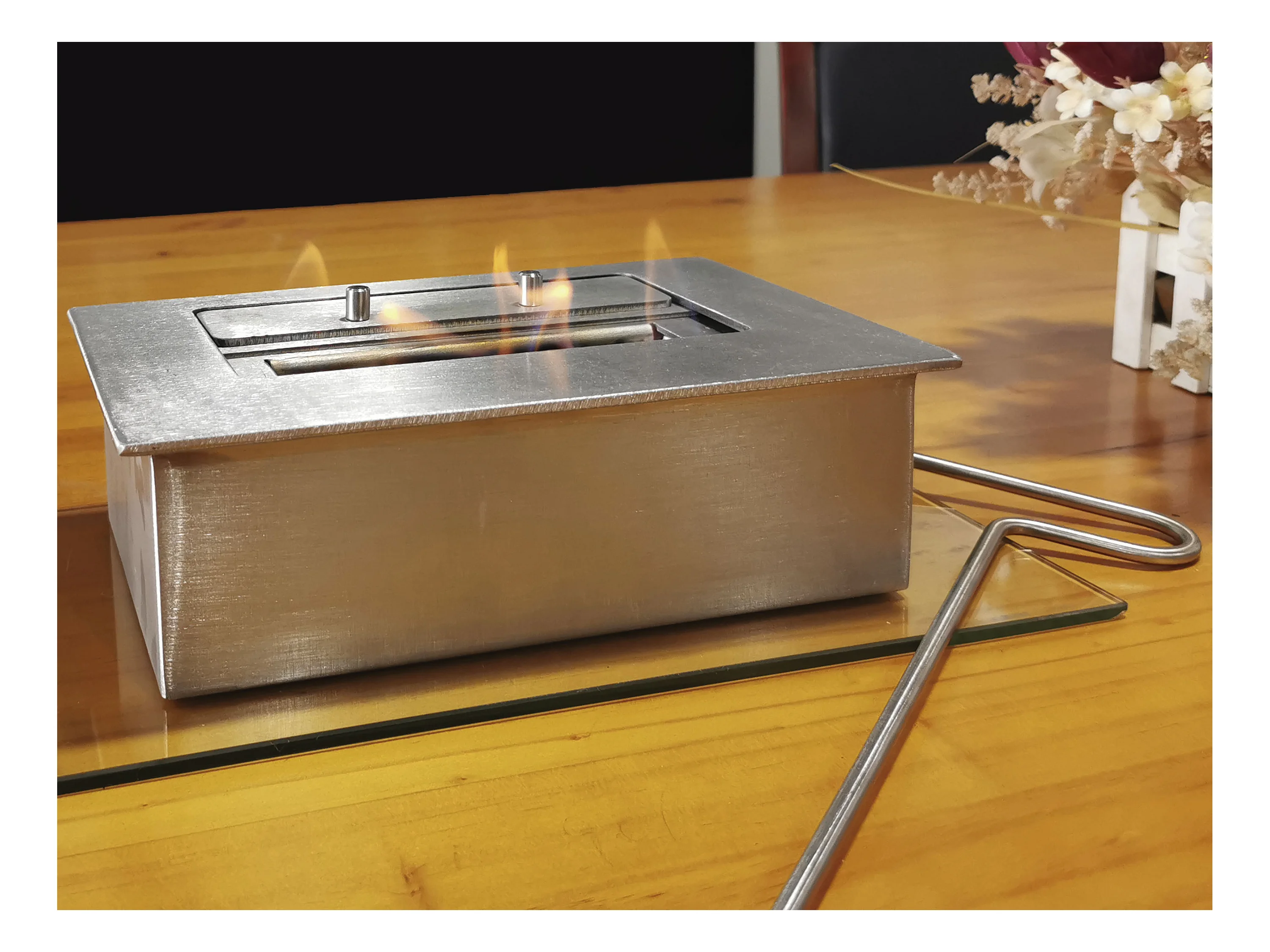 Stahlbrenner für Ethanolkamin 25cm mit Keramikfaser und Flammenregulierdeckel 1.2L
