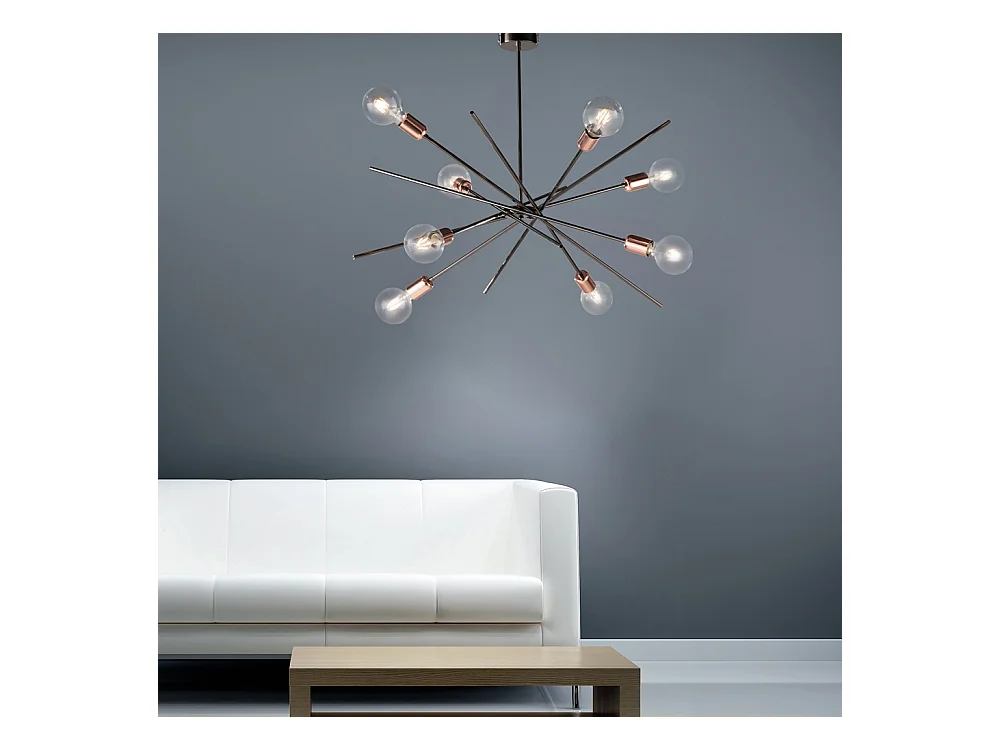 Bonetti Illumina - Bloom - Deckenleuchte aus Eisen, Chrom, Schwarz und Kupfer, 8 Lichter, H.62 – Ø82 – BL200-PL8-NR