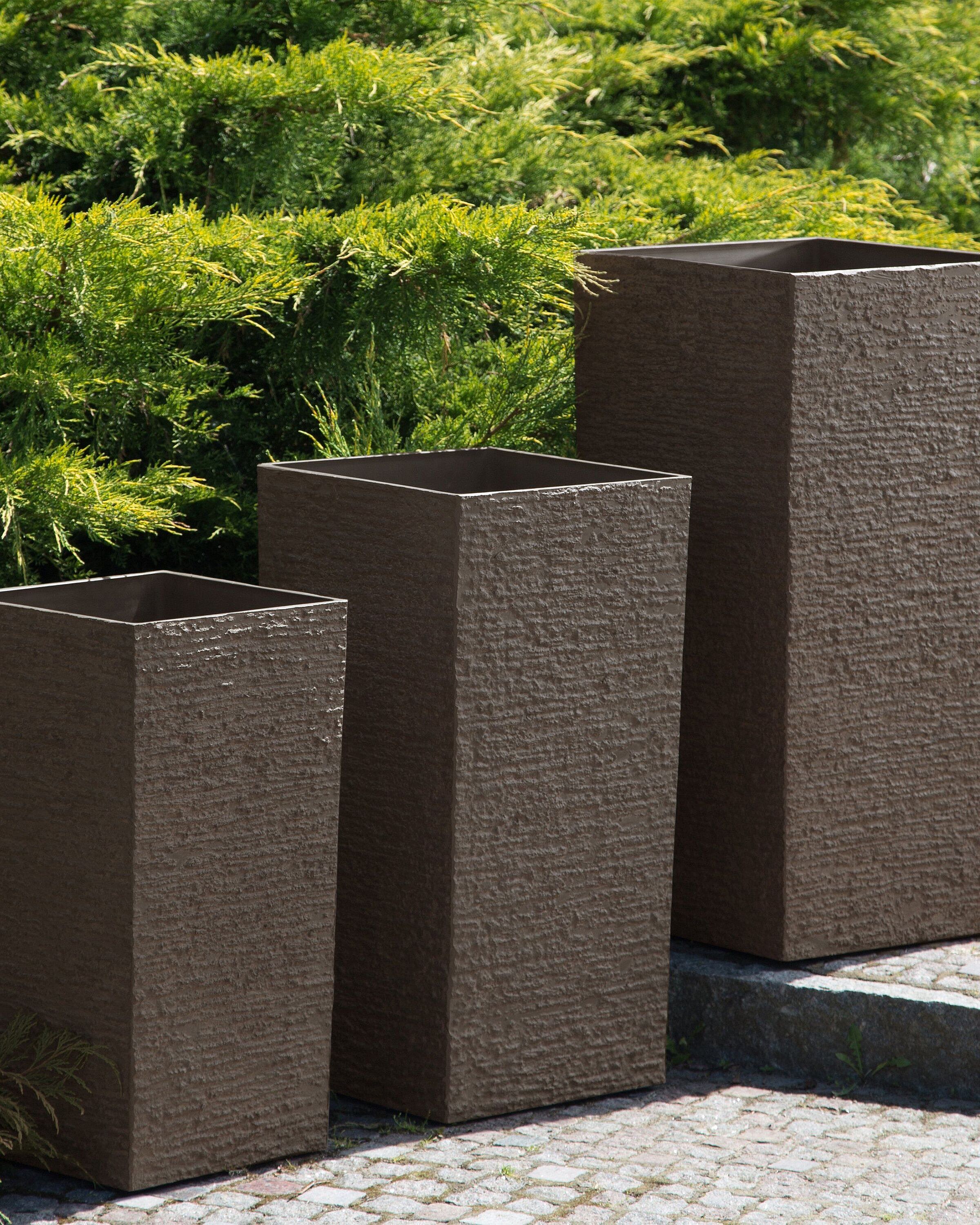 Hoher Blumentopf dunkelbraun 35x35x70 cm Steingemisch Gaza