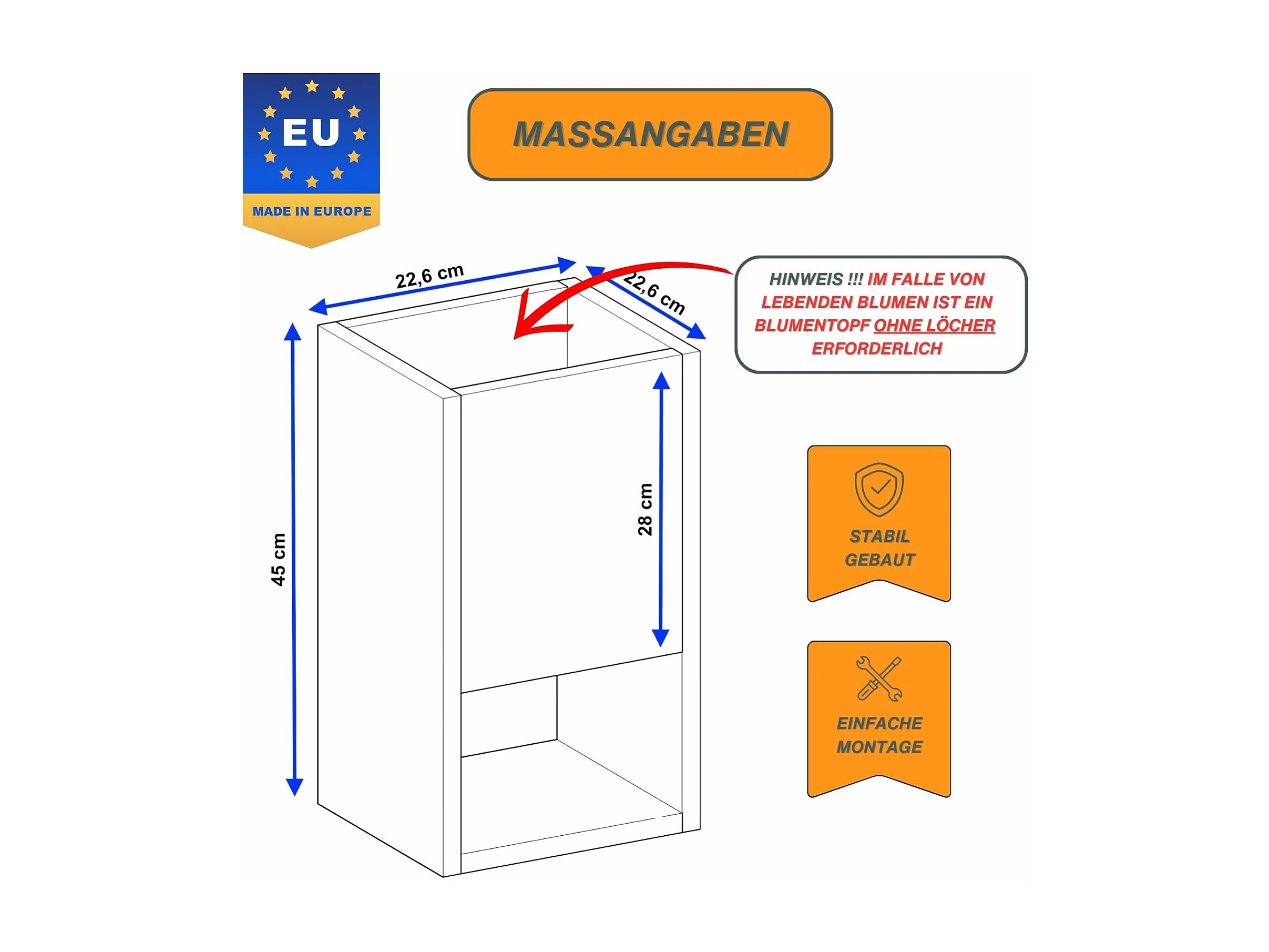 Blumenständer für Innenräume, Blumenkasten ohne Einsatz, Pflanzkasten 45x22,6x22,6cm