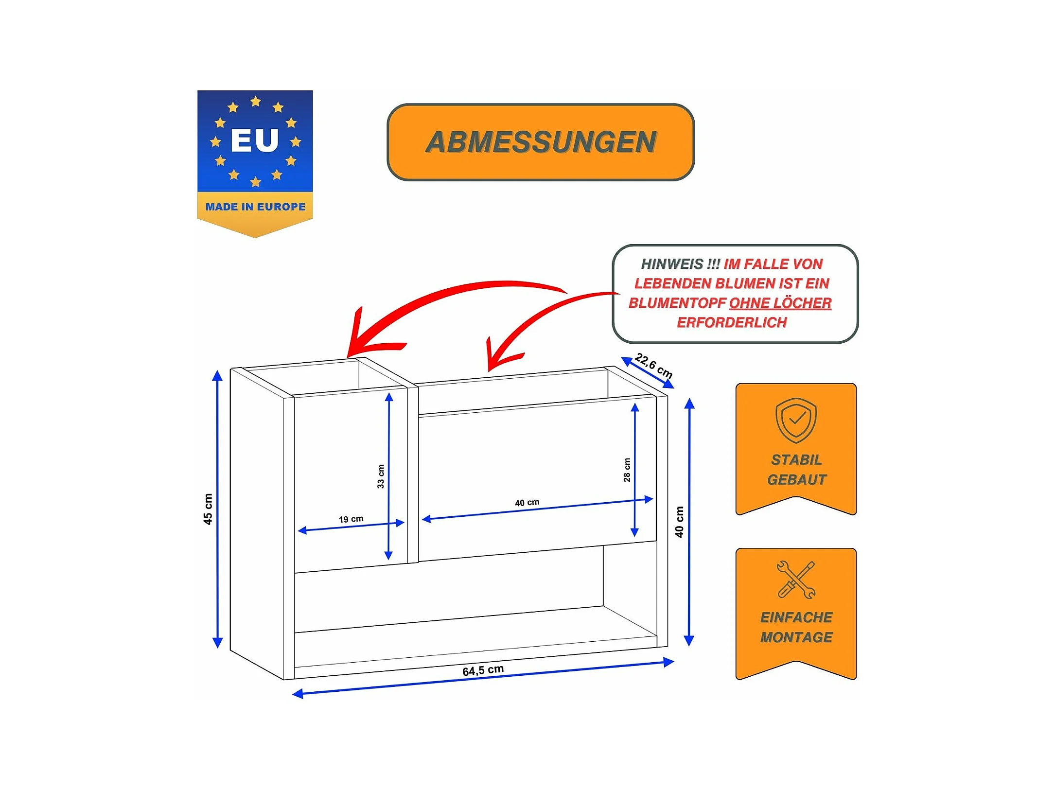 Blumenständer für Innenräume, Blumenkasten ohne Einsatz, Pflanzkasten 45x64,5x22,6cm