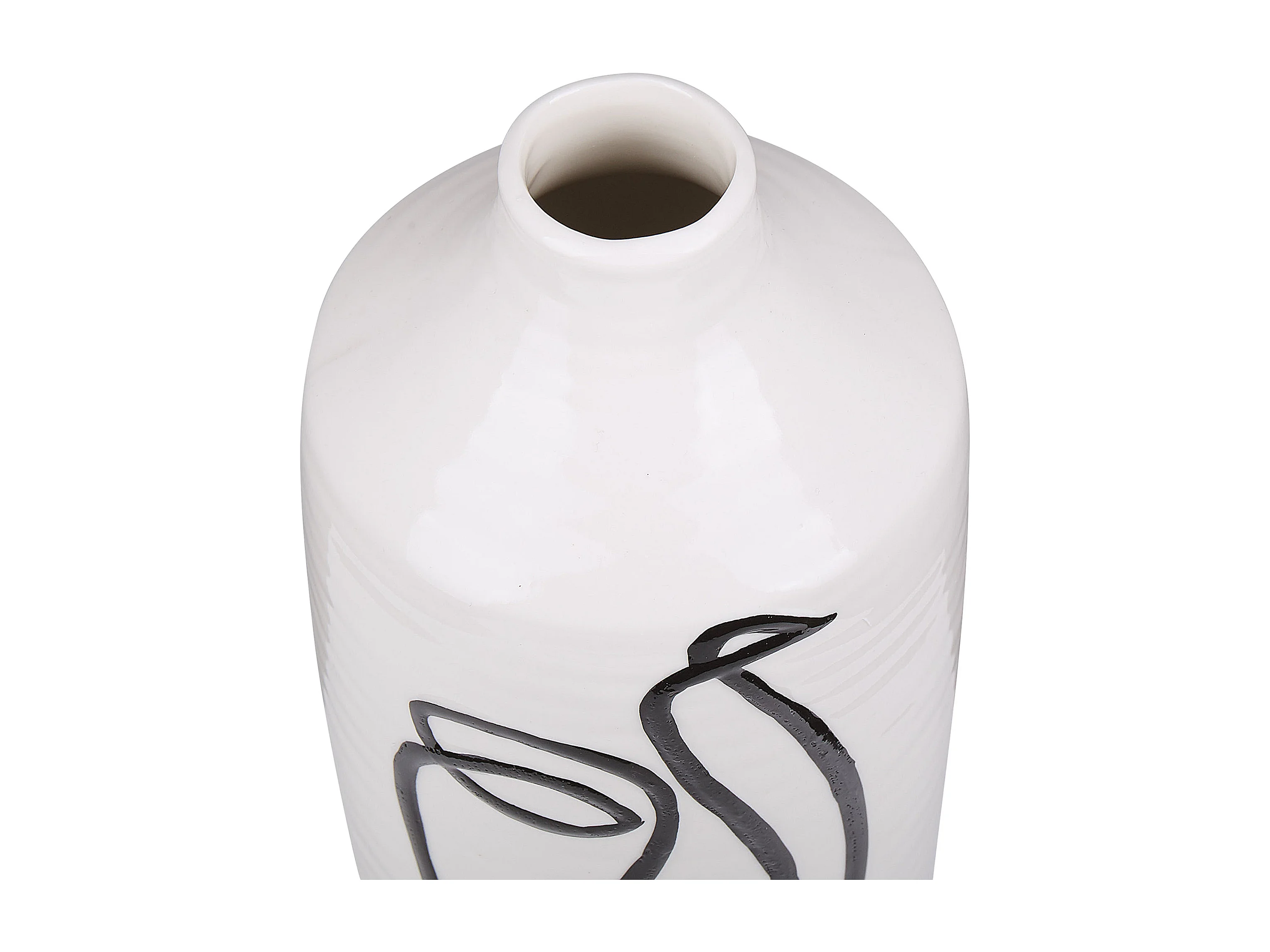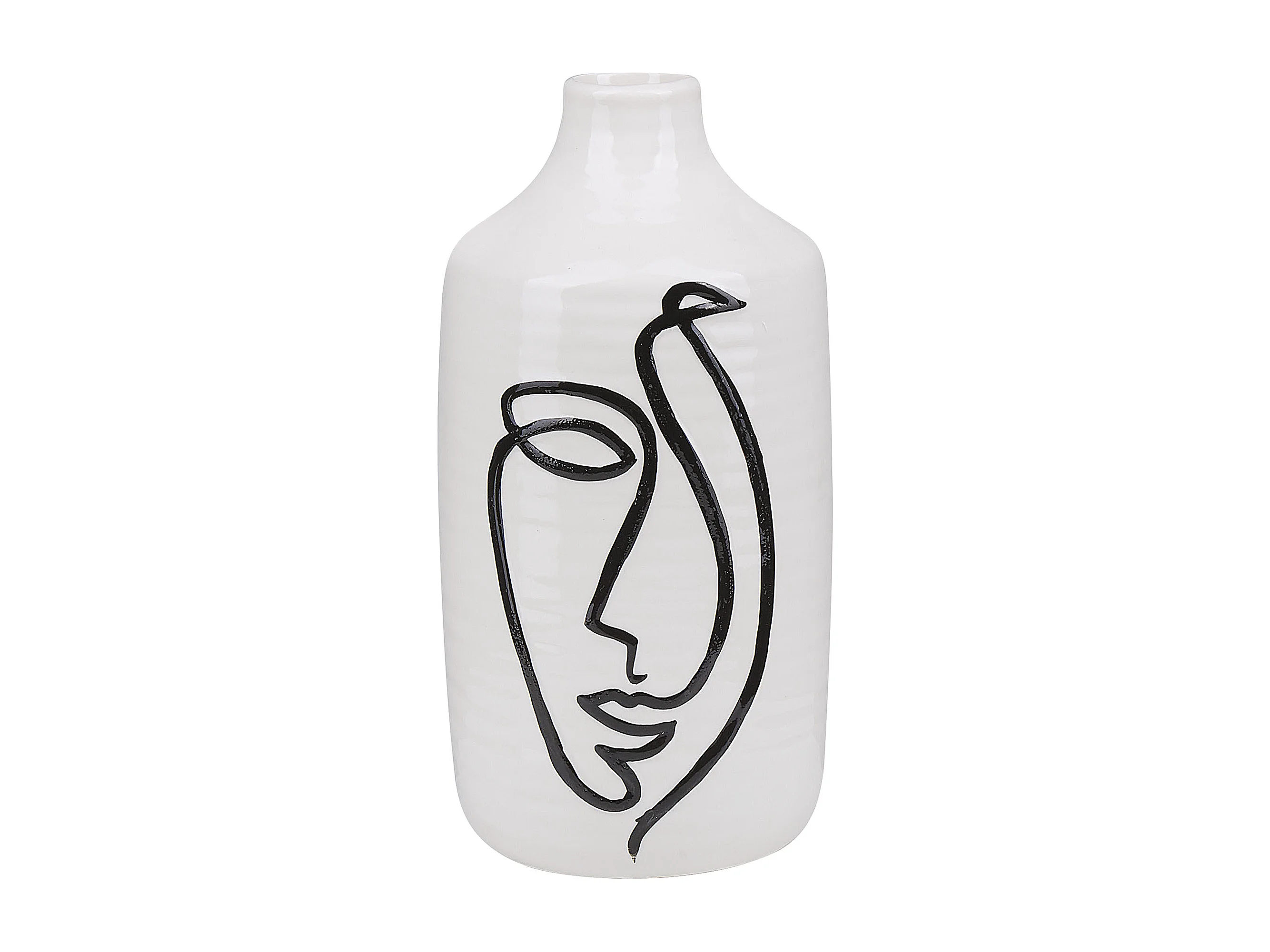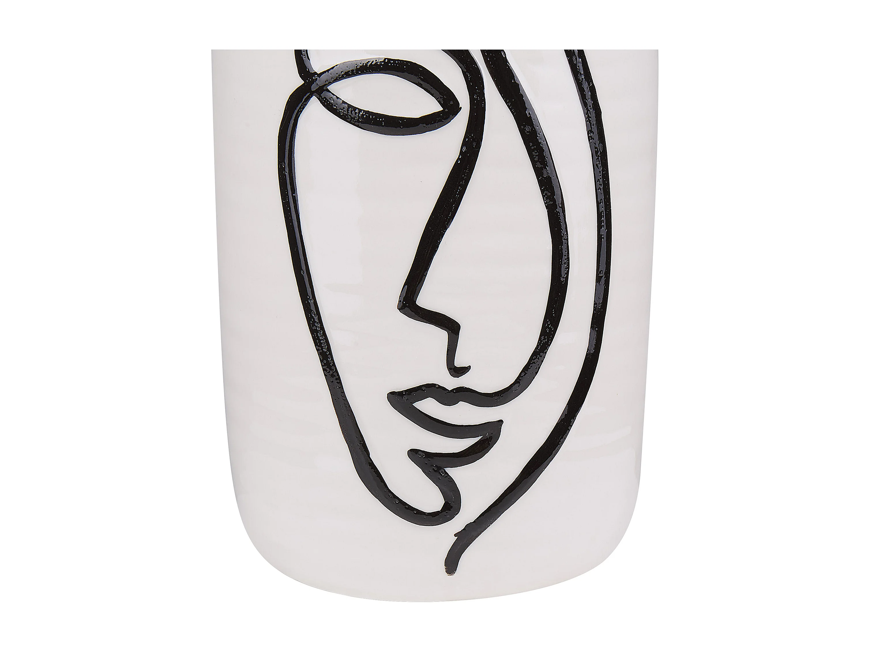 Blumenvase aus Steinzeug weiß mit aufgedrucktem Gesicht schwarz Dekoration Aenus