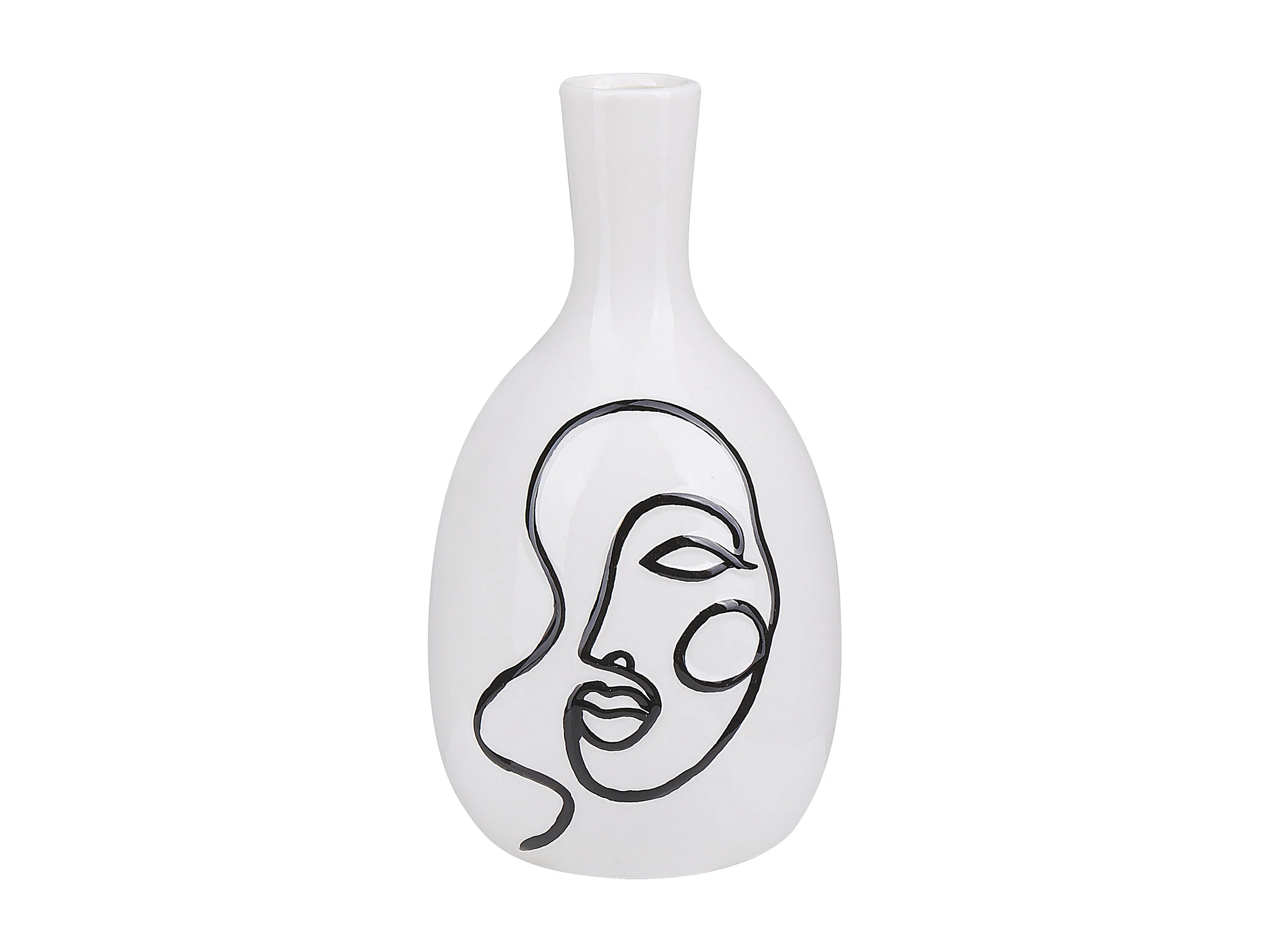 Blumenvase aus Steinzeug weiß mit aufgedrucktem Gesicht schwarz Dekoration Akrai
