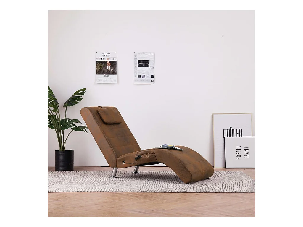 Blytheville Massage Chaiselongue mit Kissen Braun Wildleder-Optik