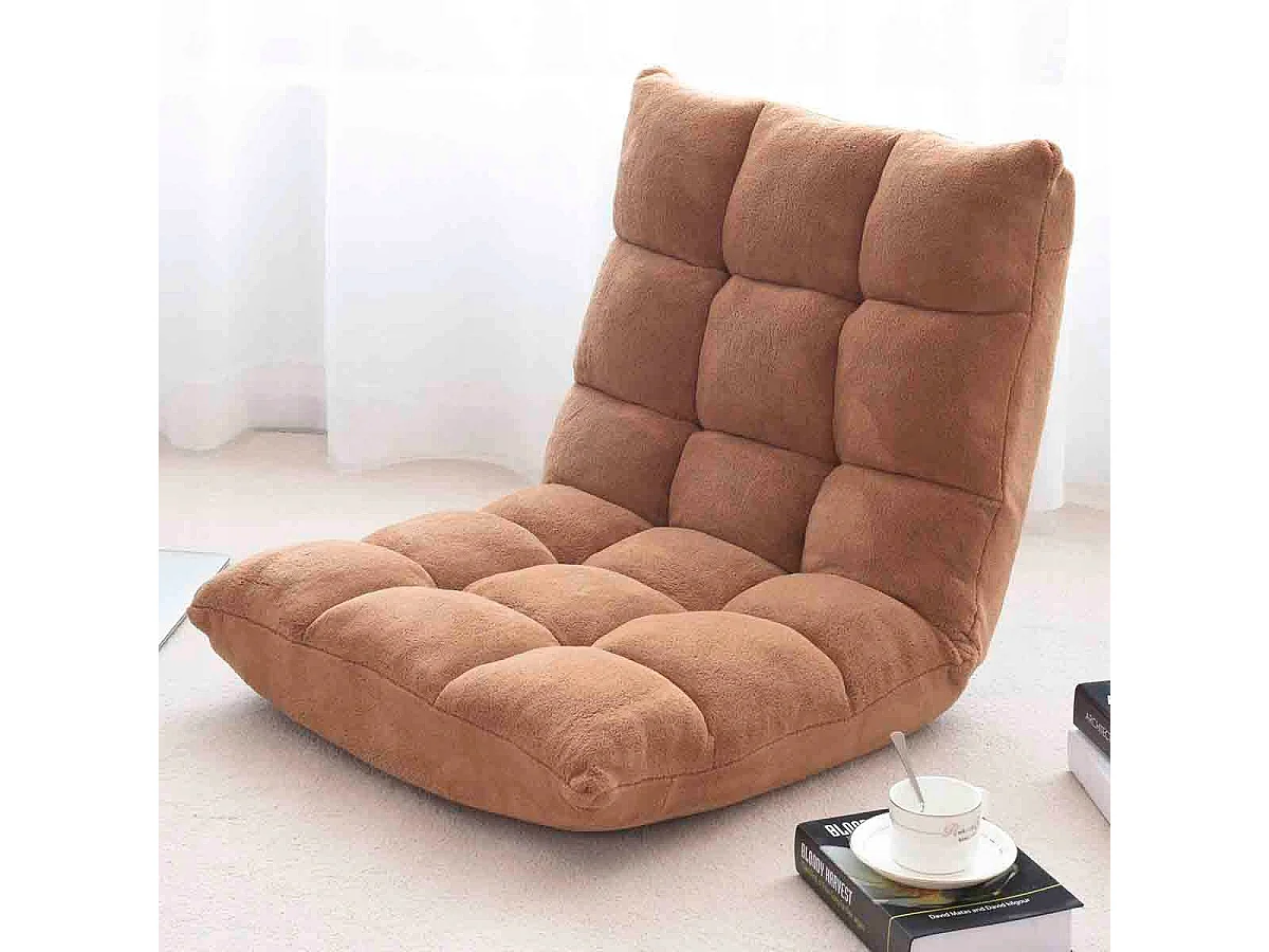 Bodenstuhl mit Rückenstütze Liegestuhl aus Korallensamt 105 x 56 x 15 cm Beige