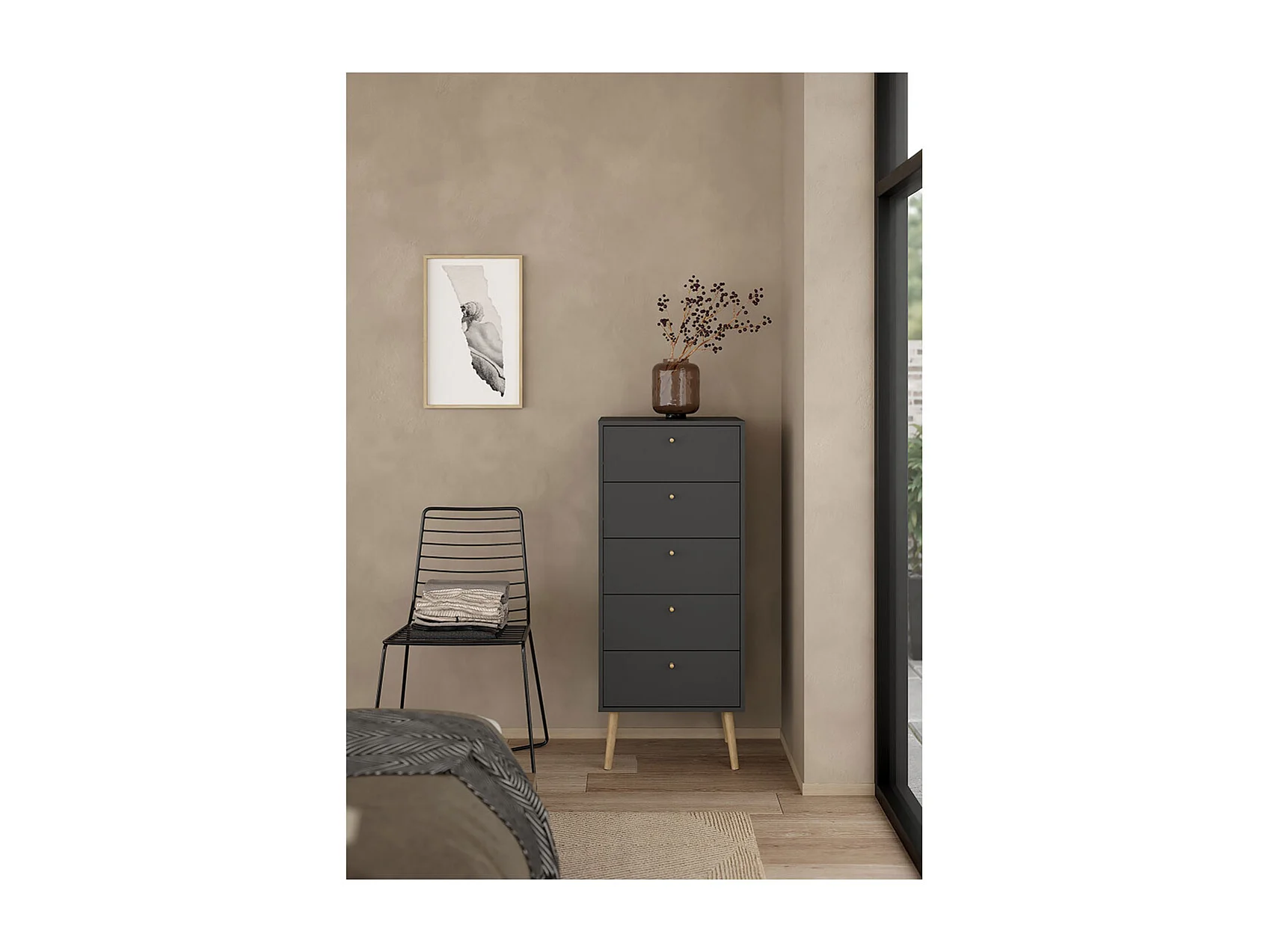 Bodo Kommode 5 Schubladen matte grau.