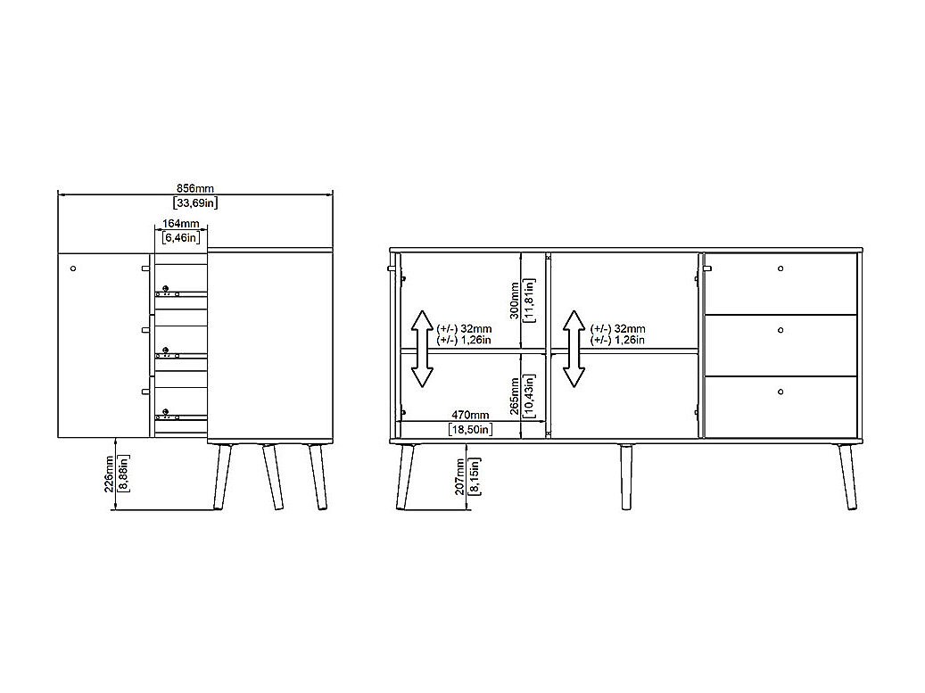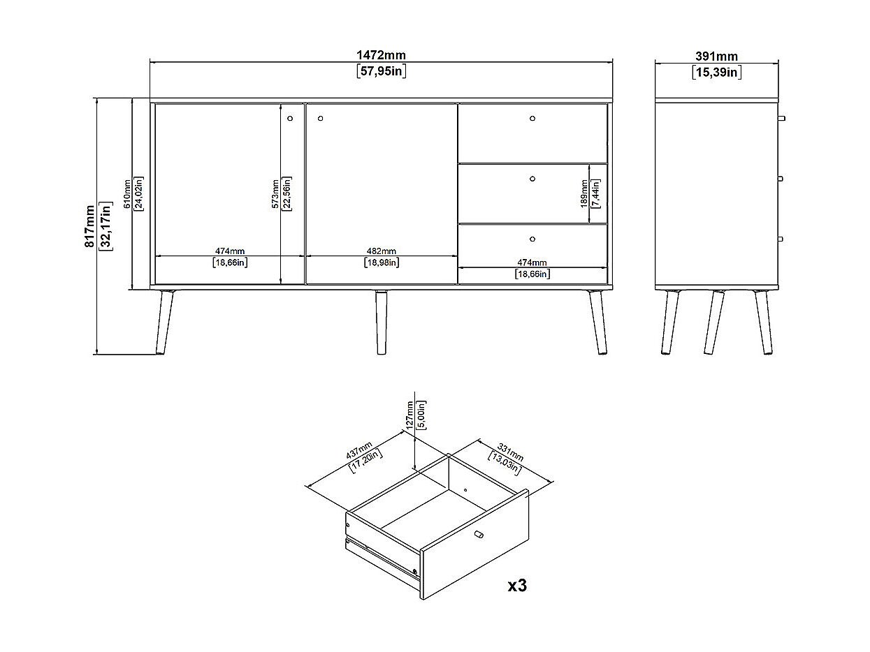 Bodo Sideboard 2 Türen, 3 Schubladen weiß.