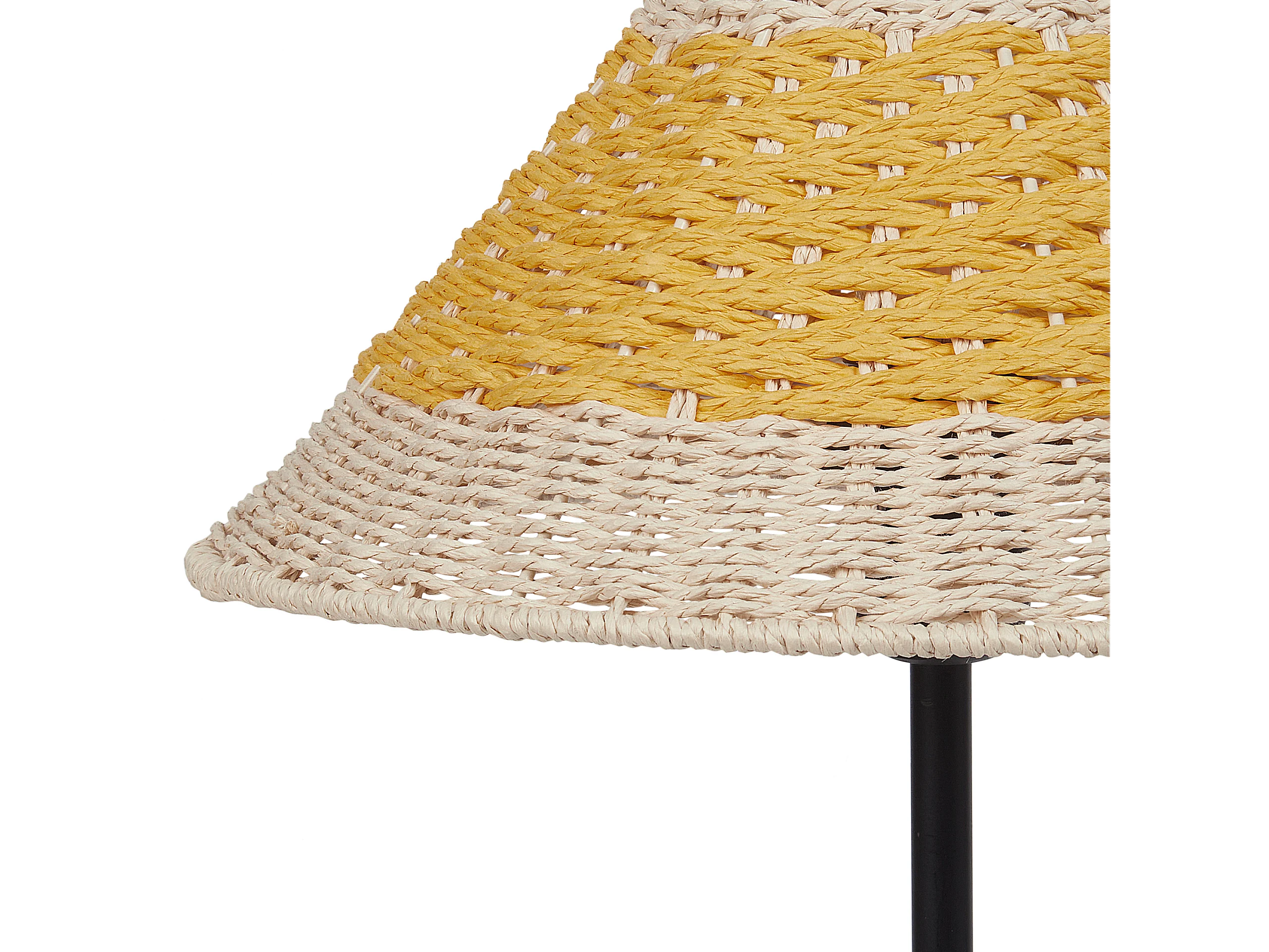 Boho Tischlampe Papiergeflecht beige / gelb 40 cm mit Schirm Kegelform Momba