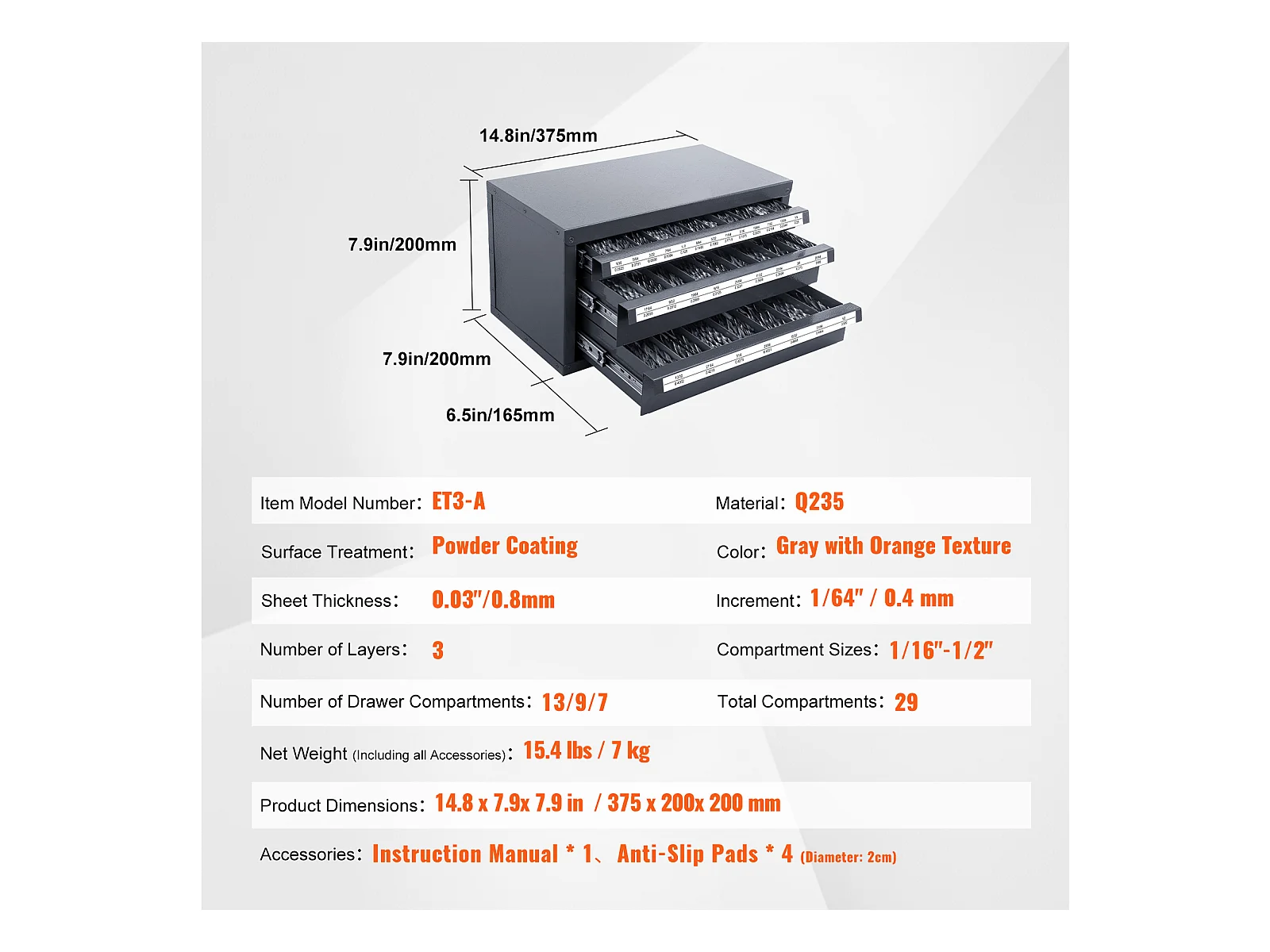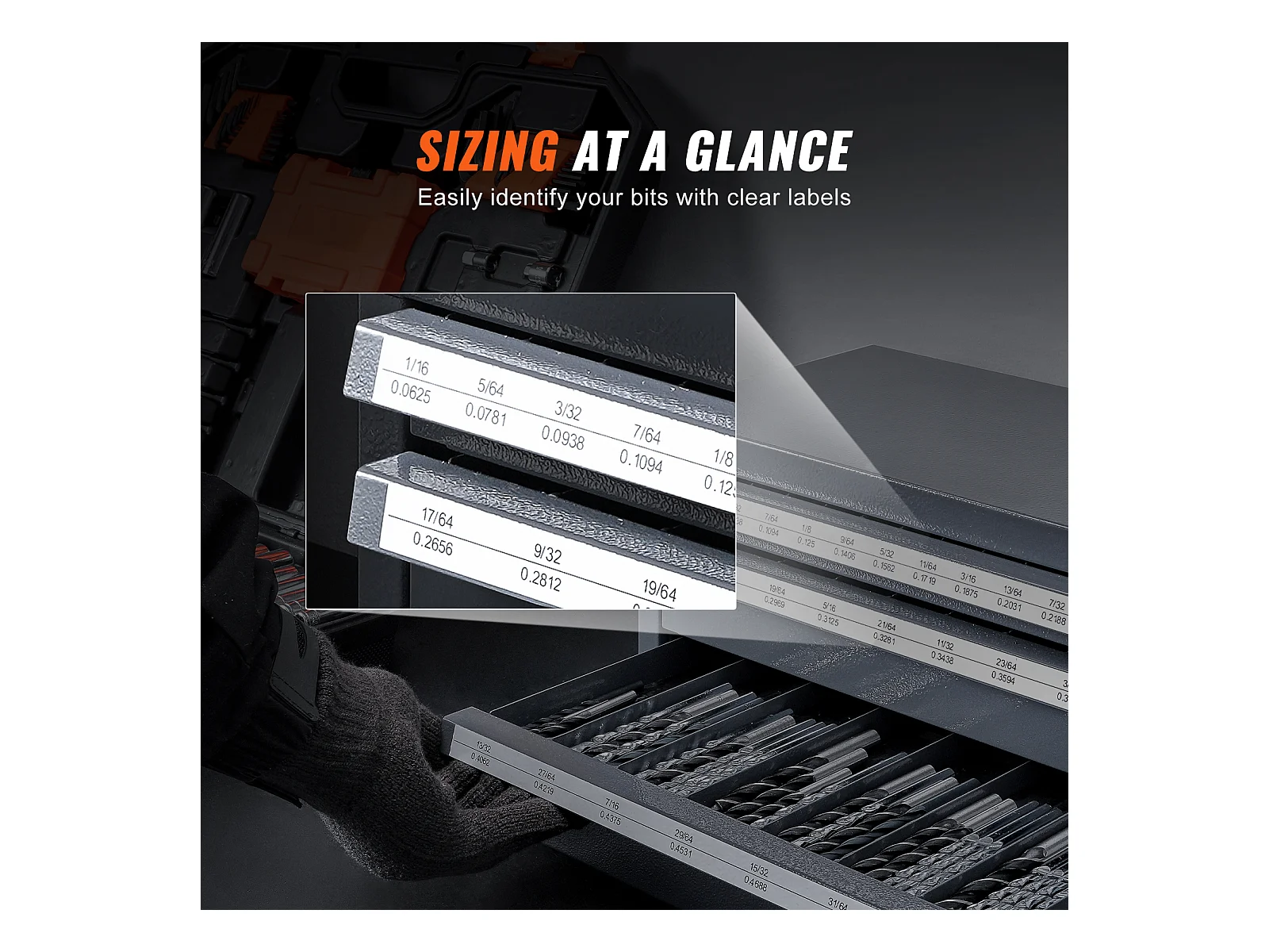 Bohrer-Verteiler-Schrank SucceBuy Drei Schubladen für 2.54cm/40.64cm bis 2.54cm/5.08cm, Schrank mit Etiketten, Stapelbar zur Aufbewahrung von Bohrern