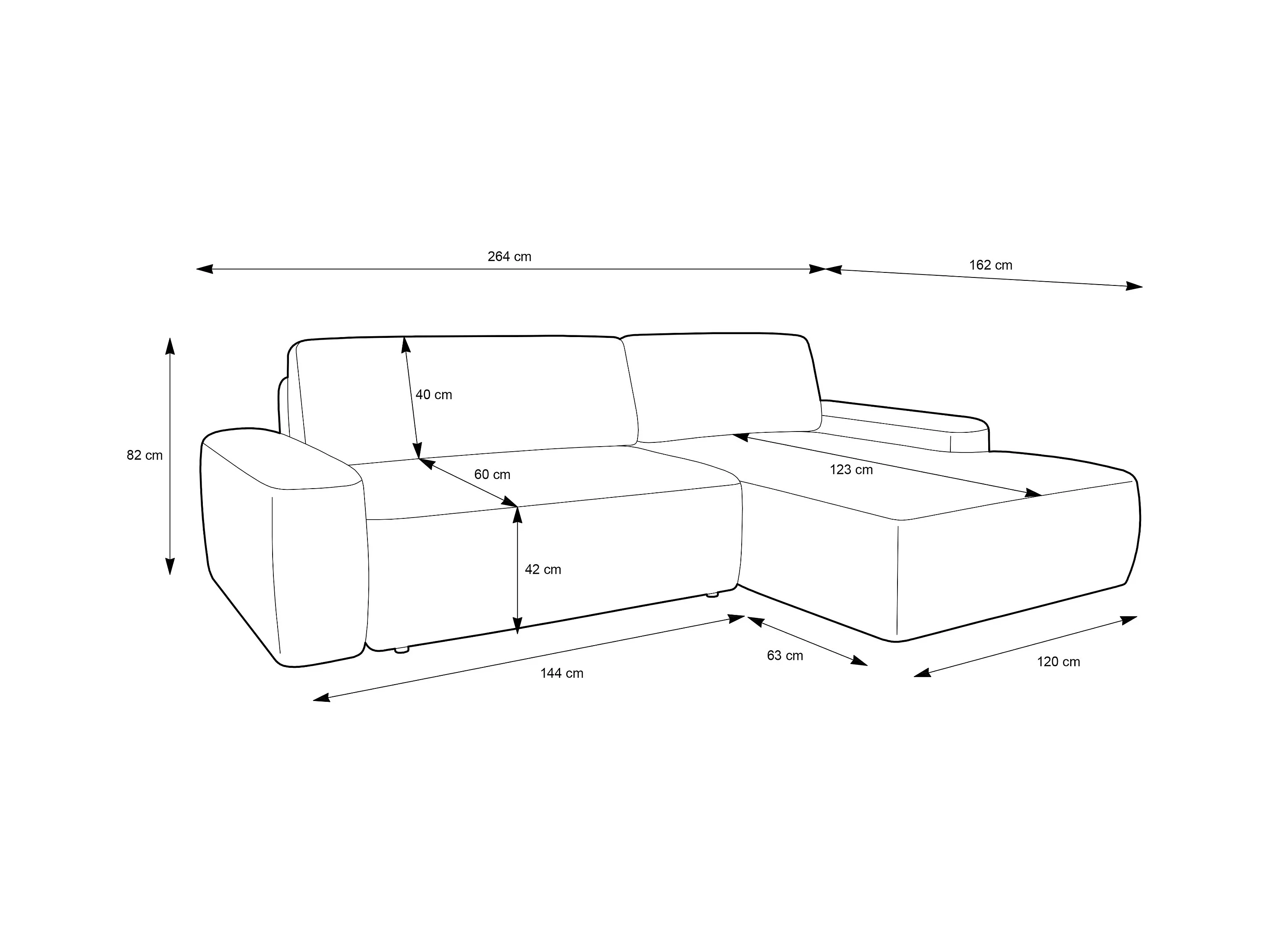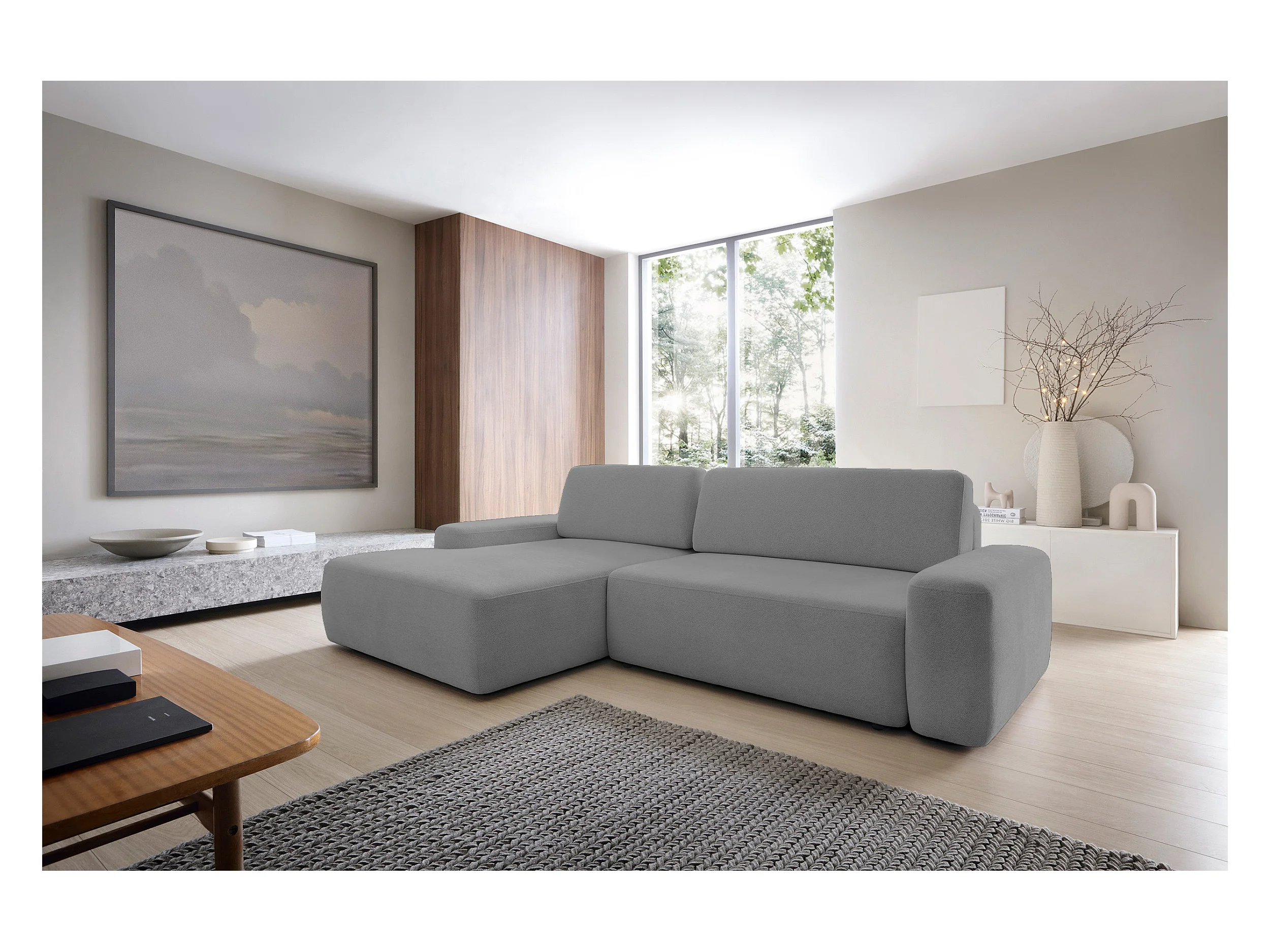 BOULI 4-Sitzer Polstersofa Raven mit Schlaffunktion 130x210cm Bettzeugablage 264x162x82cm linksseitig Farbe: grau