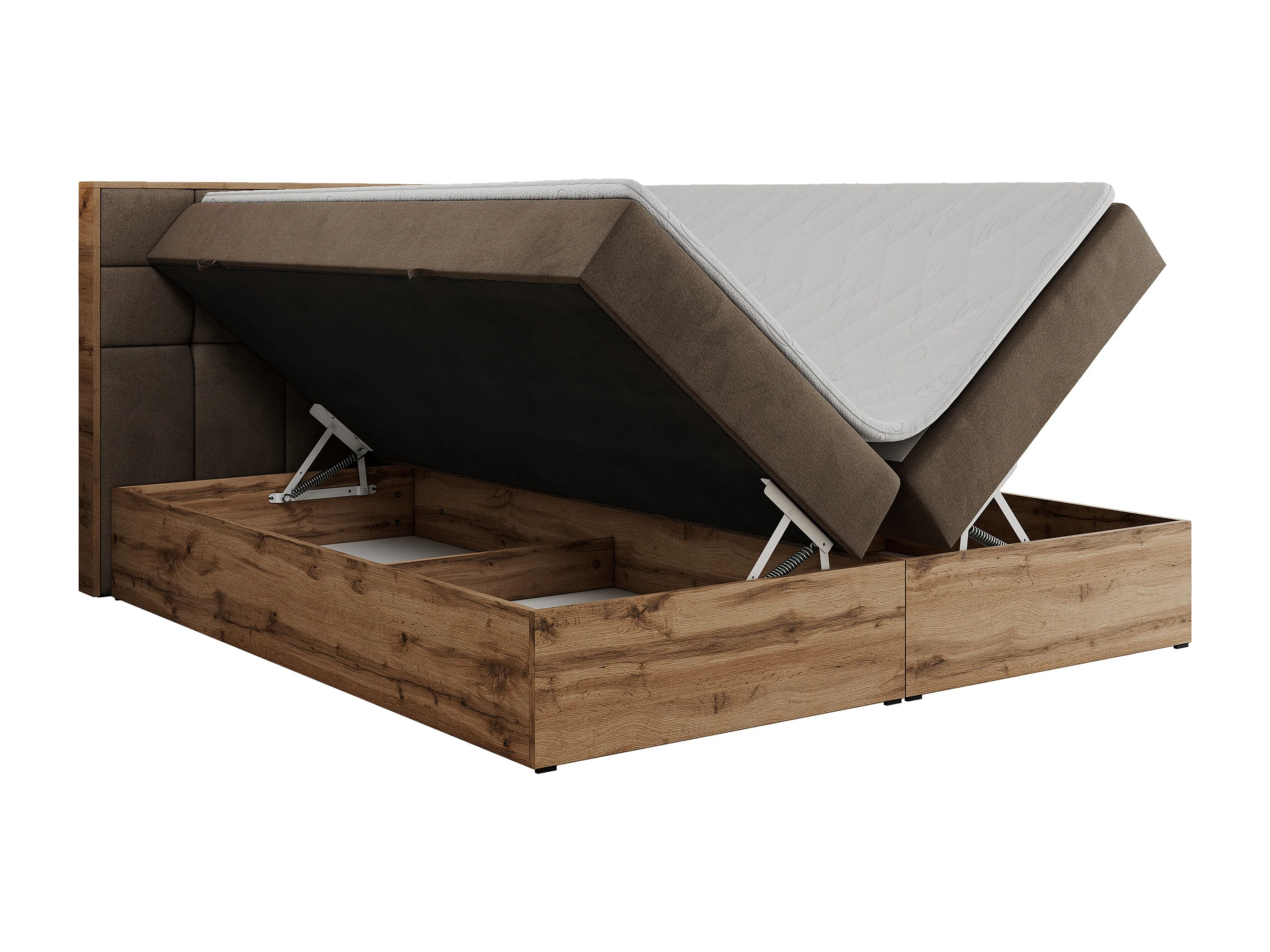 Boxspringbett ALBERO 1, Polsterbett mit gestepptem Kopfteil, Multipocket-Matratze - 140x200 cm - H4 - Braun Velvet