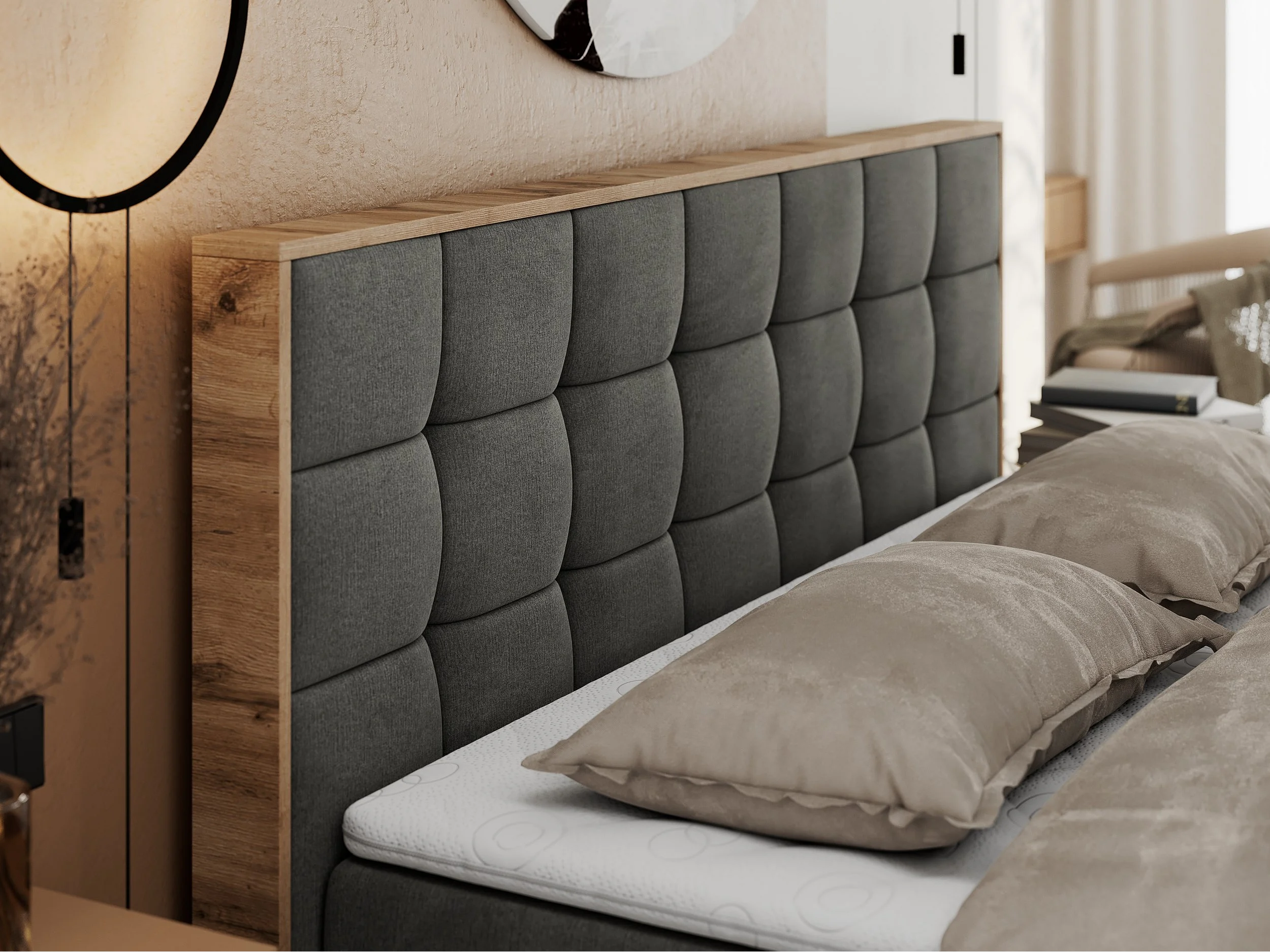 Boxspringbett ALBERO 1, Polsterbett mit gestepptem Kopfteil, Multipocket-Matratze - 160x200 cm - H4 - Dunkelgrau Velvet