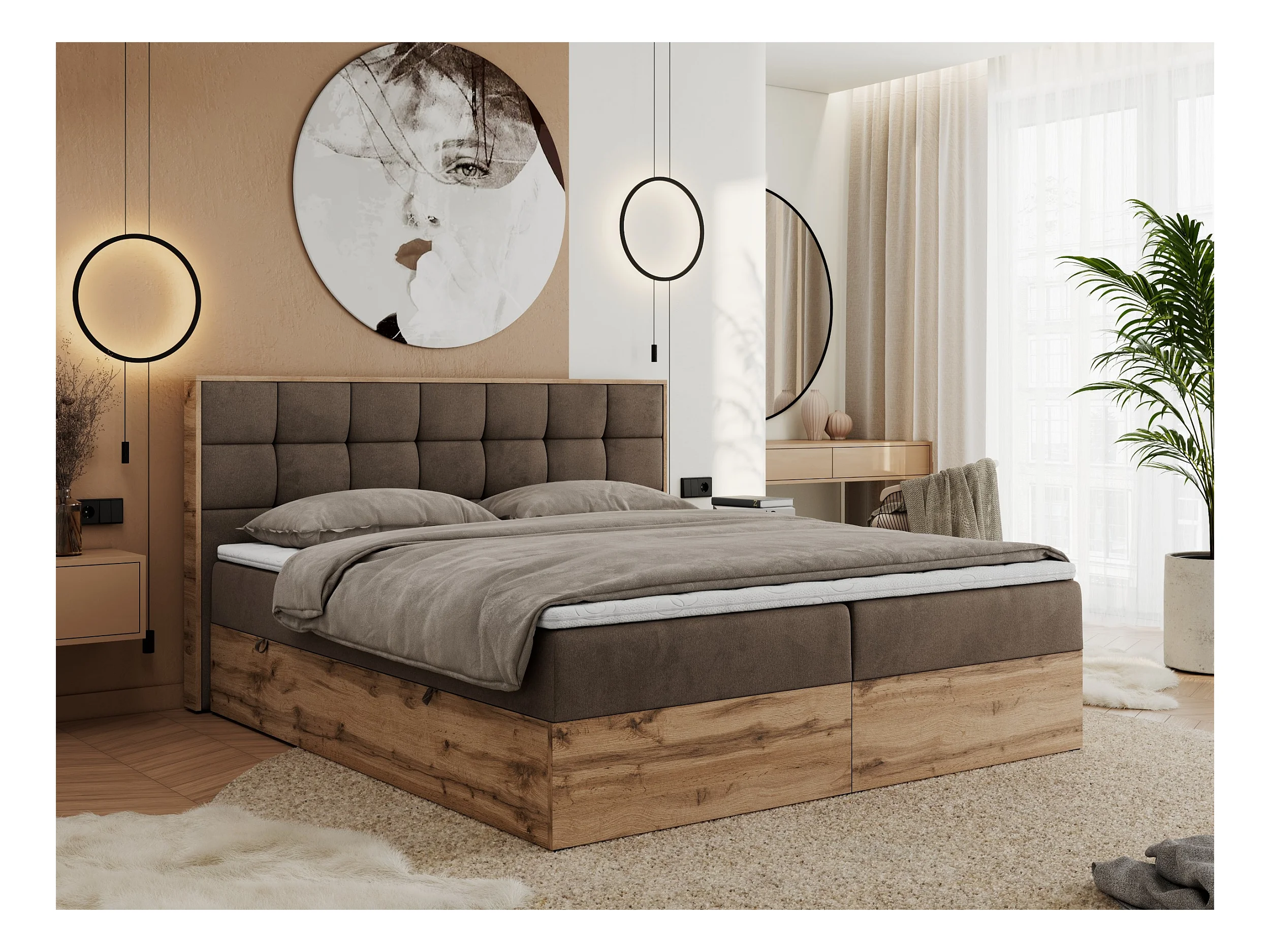 Boxspringbett ALBERO 1, Polsterbett mit gestepptem Kopfteil, Multipocket-Matratze - 180x200 cm - H4 - Braun Velvet