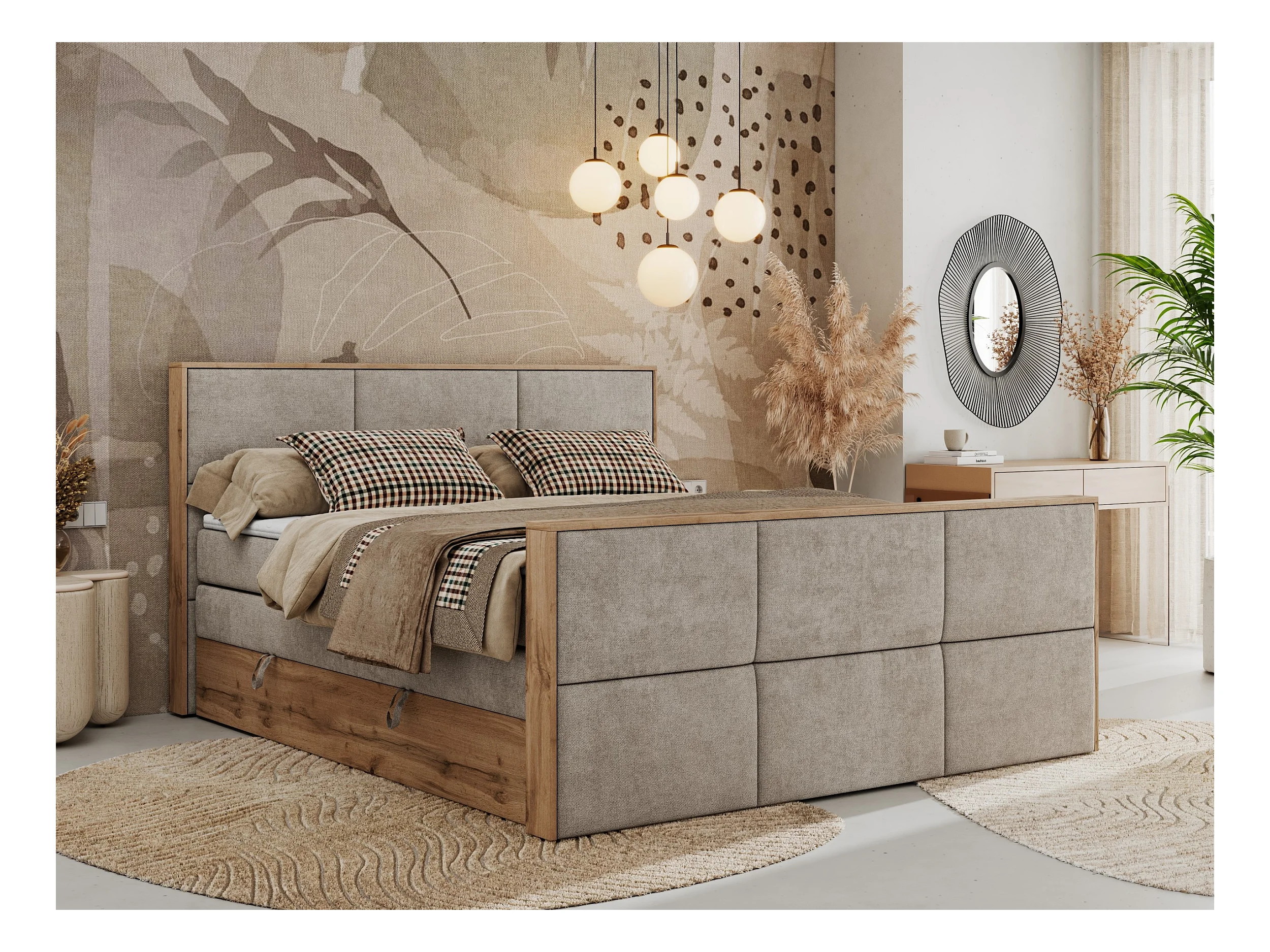 Boxspringbett ALBERO 2 KING DUO - Eiche Wotan Holzrahmen, zwei Multipocket-Matratzen, Bettkästen - 120x200 cm - H4 - Beige Strukture