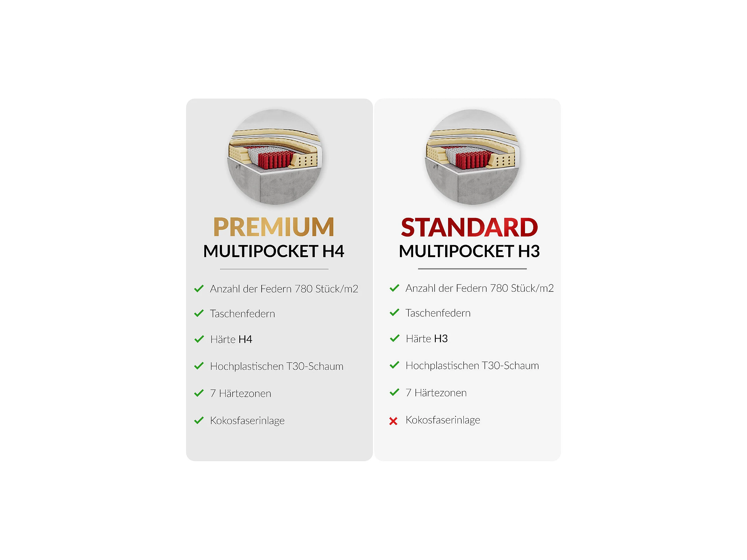 Boxspringbett ALBERO 2 KING DUO - Eiche Wotan Holzrahmen, zwei Multipocket-Matratzen, Bettkästen - 140x200 cm - H3 - Dunkelgrau Kunstleder