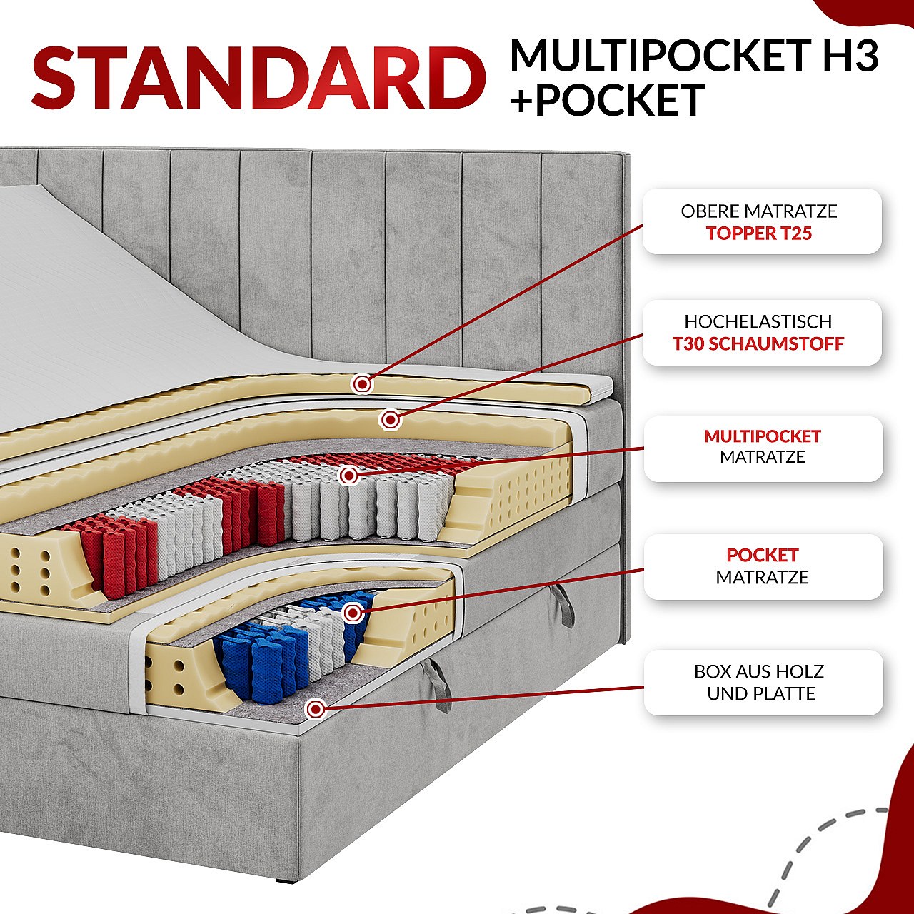 Boxspringbett ALBERO 2 KING DUO - Eiche Wotan Holzrahmen, zwei Multipocket-Matratzen, Bettkästen - 140x200 cm - H3 - Orange Strukture