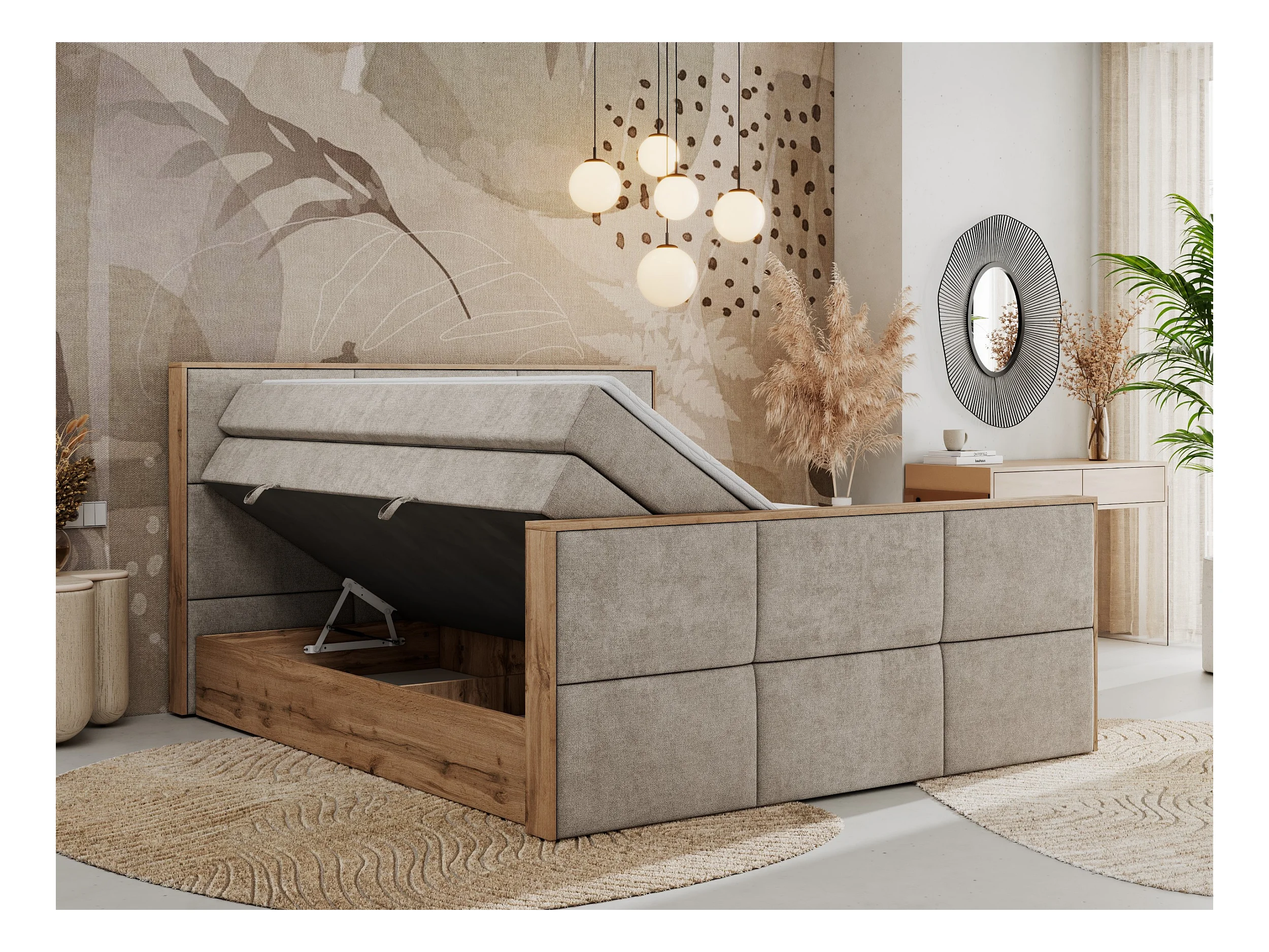Boxspringbett ALBERO 2 KING DUO - Eiche Wotan Holzrahmen, zwei Multipocket-Matratzen, Bettkästen - 140x200 cm - H4 - Beige Strukture