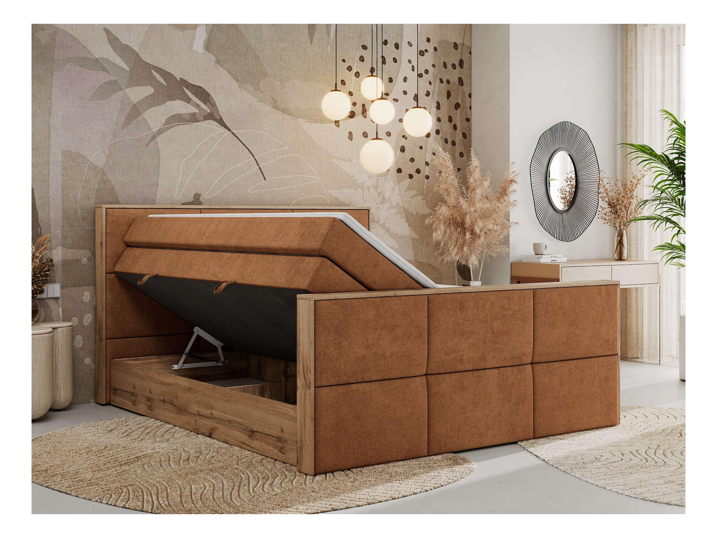 Boxspringbett ALBERO 2 KING DUO - Eiche Wotan Holzrahmen, zwei Multipocket-Matratzen, Bettkästen - 200x200 cm - H3 - Orange Strukture