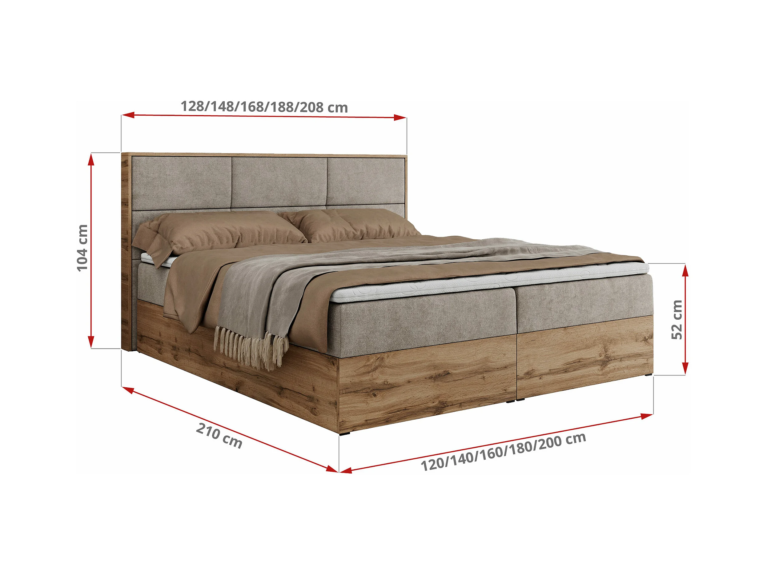 Boxspringbett ALBERO 2 mit Topper und Multipocket-Matratze, Stauraum, Holzrahmen - 180x200 cm - H3 - Beige Strukture