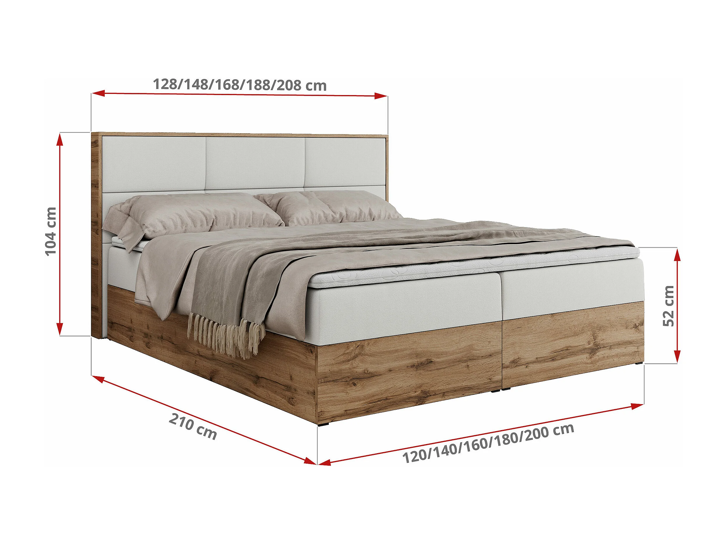 Boxspringbett ALBERO 2 mit Topper und Multipocket-Matratze, Stauraum, Holzrahmen - 180x200 cm - H3 - Weiß Kunstleder