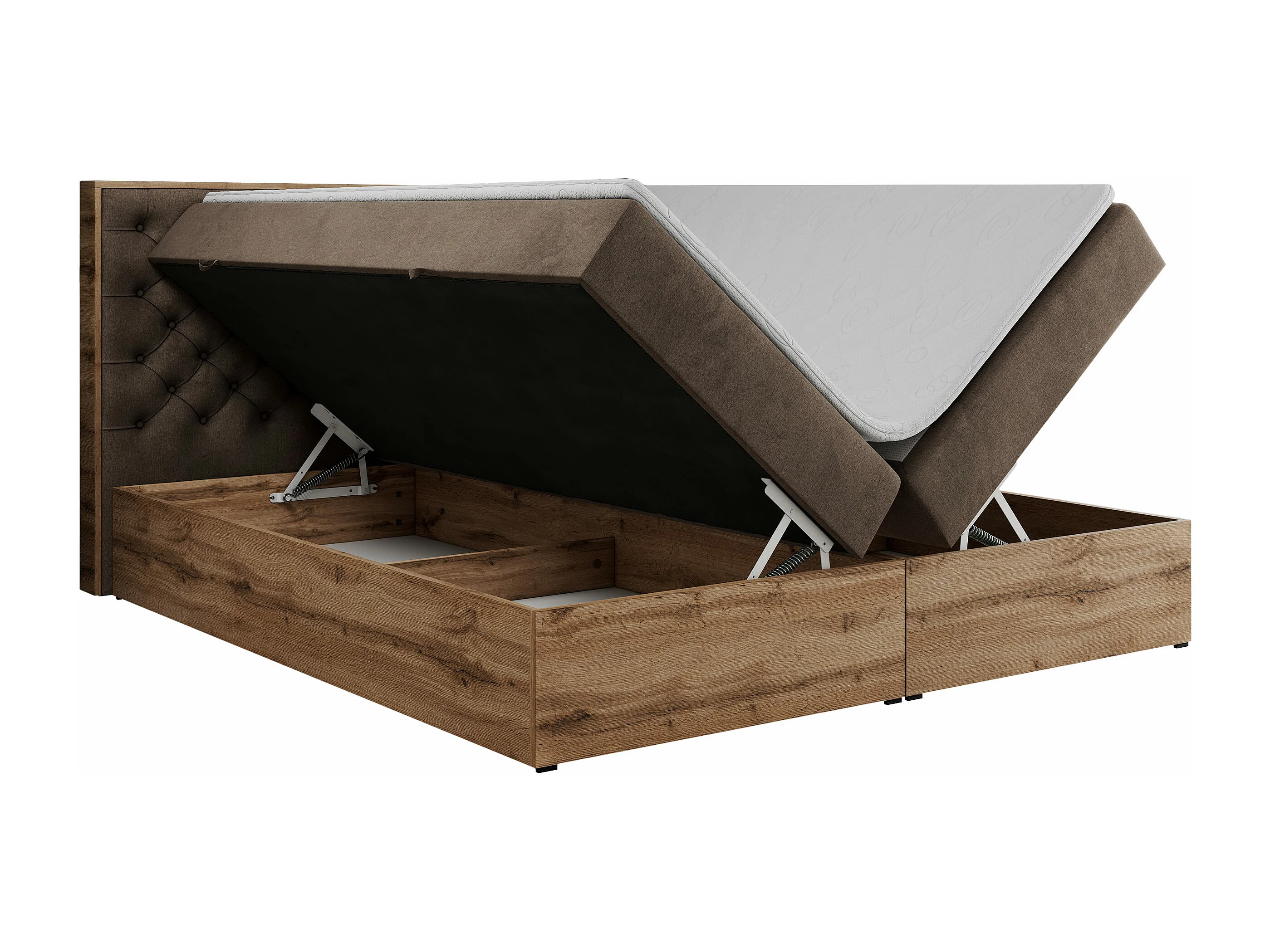 Boxspringbett ALBERO 3 - gesteppte Kopfstütze, Eiche Wotan Holzrahmen, Stauraum - 120x200 cm - H3 - Braun Velvet