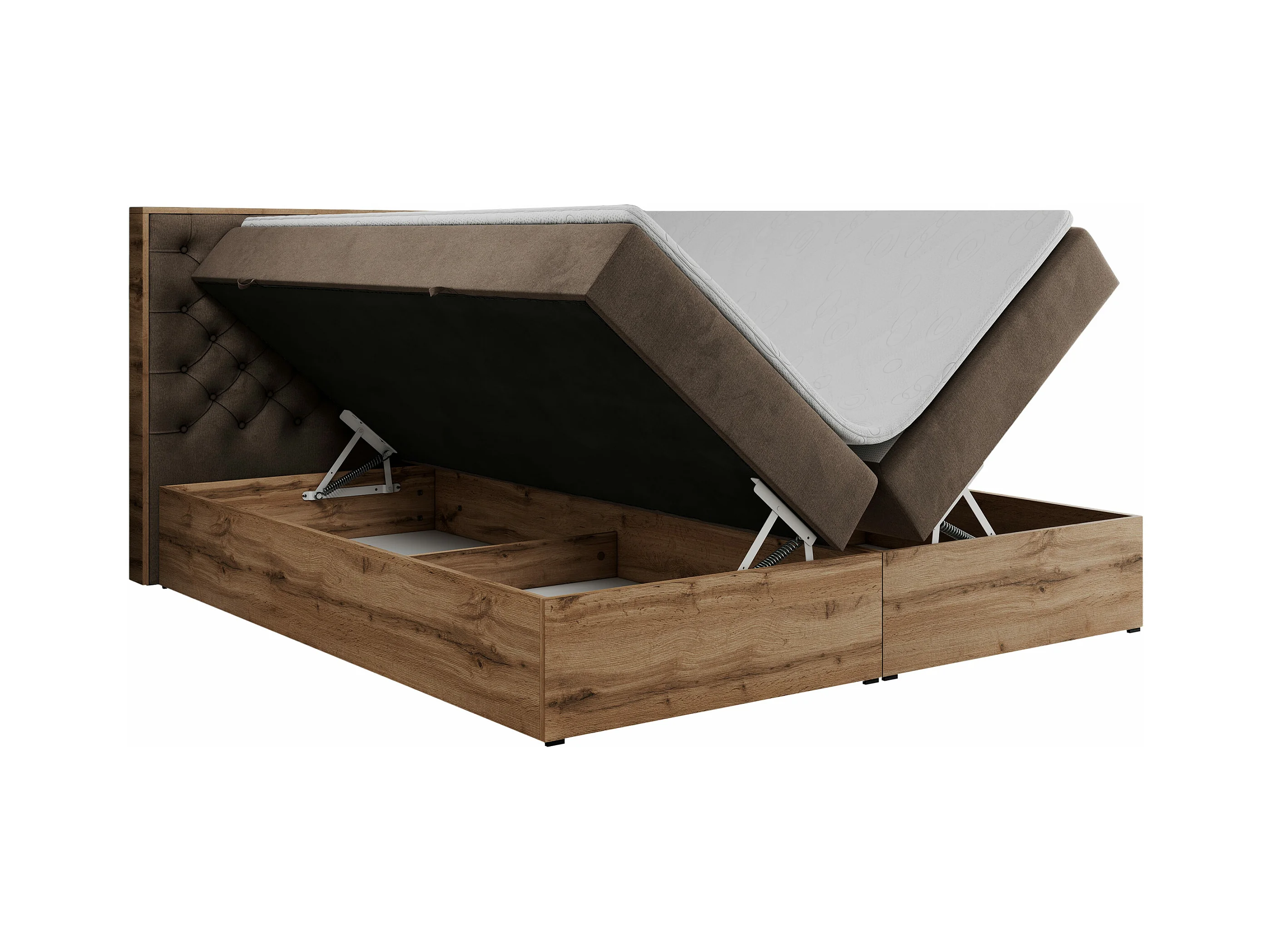 Boxspringbett ALBERO 3 - gesteppte Kopfstütze, Eiche Wotan Holzrahmen, Stauraum - 180x200 cm - H4 - Braun Velvet