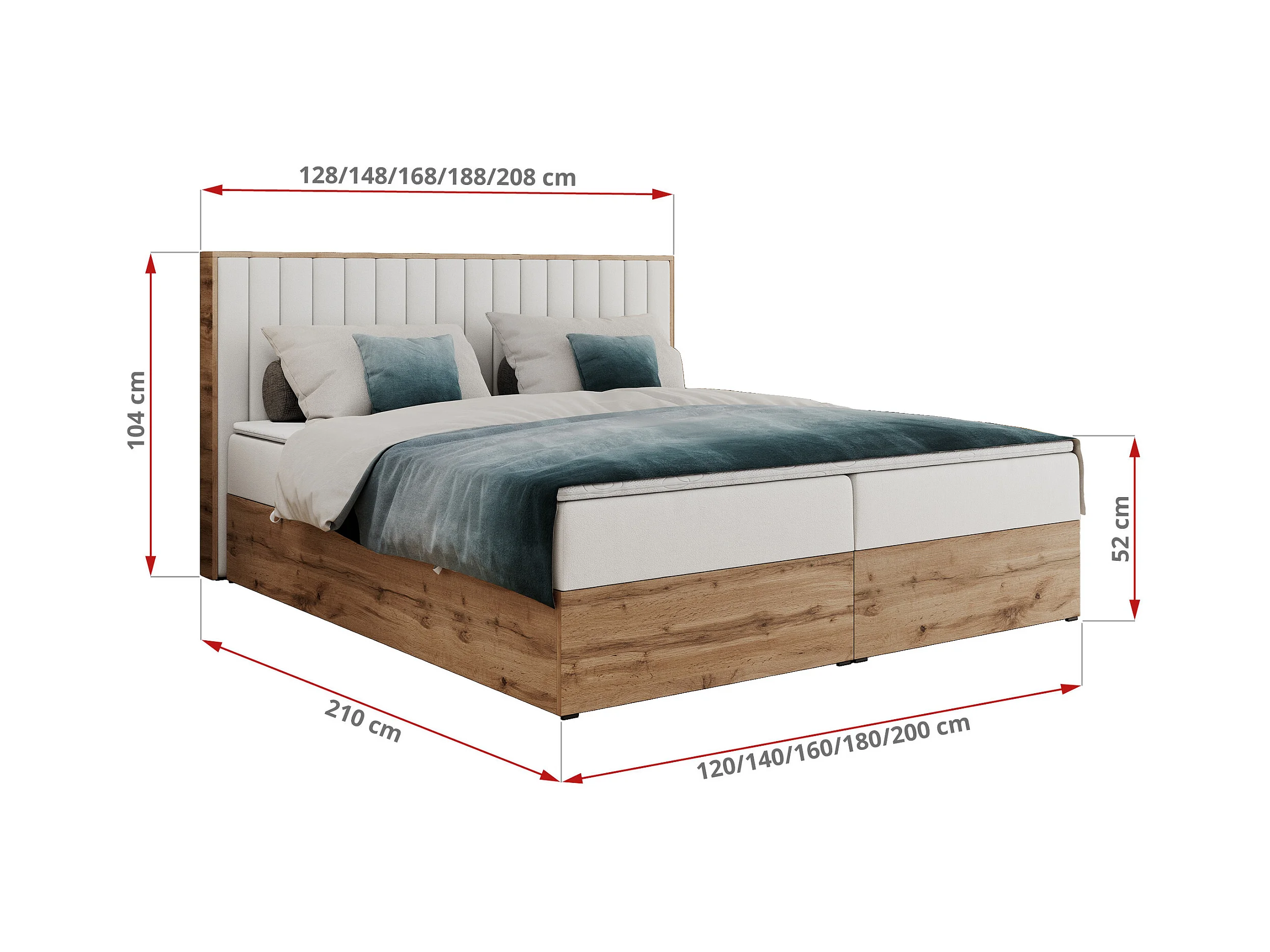 Boxspringbett ALBERO 4, Eiche Wotan Holzrahmen, mit Stauraum, genähtes Kopfteil - 160x200 cm - H4 - Weiß Kunstleder