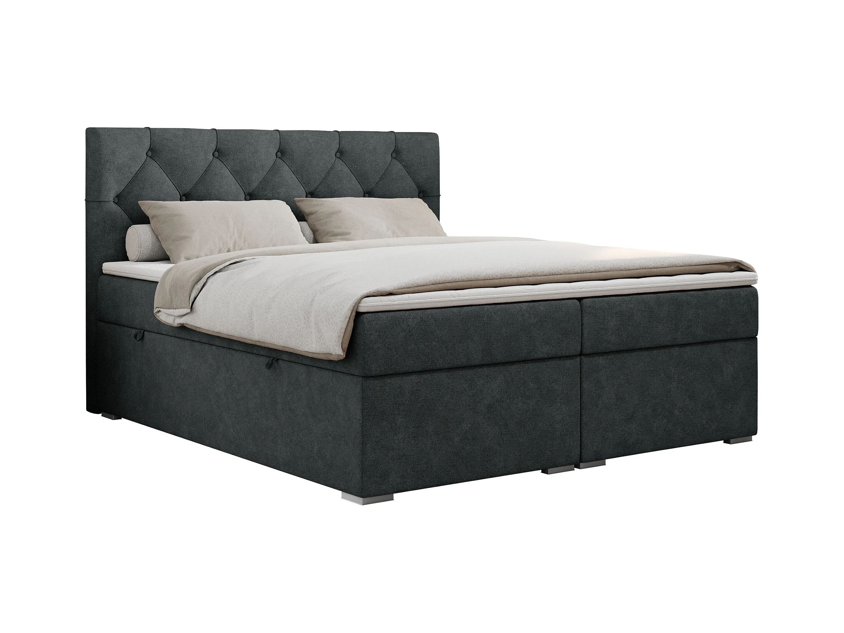 Boxspringbett ALDA - Doppelbett mit gestepptem Kopfteil, Multipocket-Matratze und Topper, zwei Bettkästen - 120x200 cm - H3 - Dunkelgrau Strukture