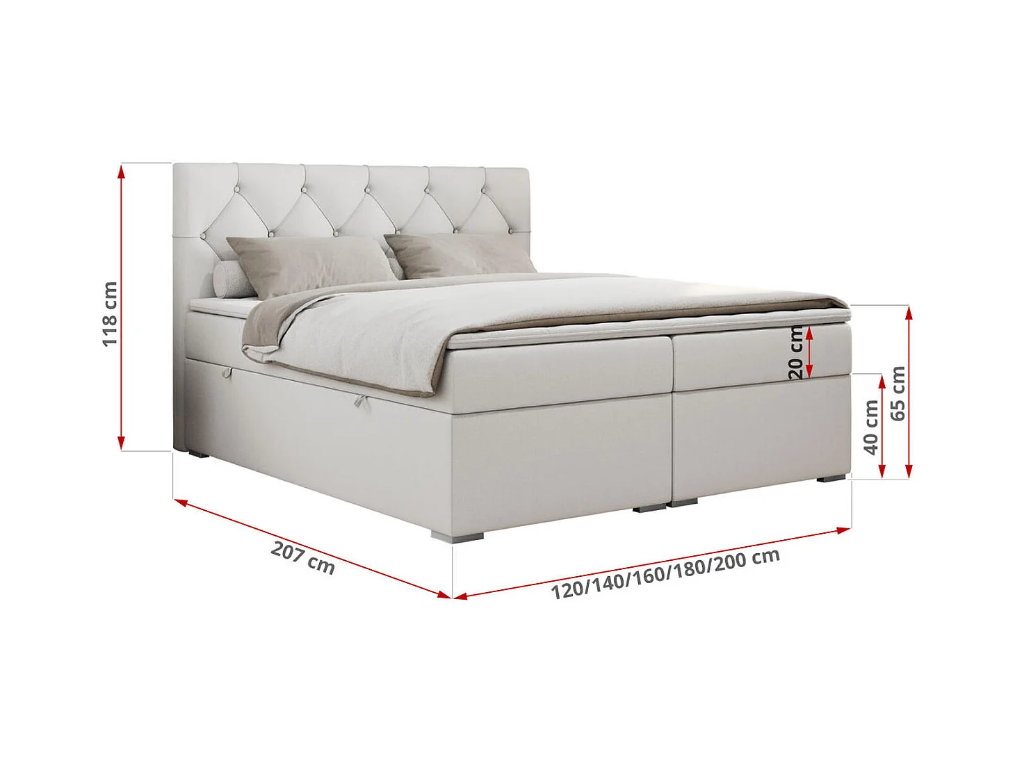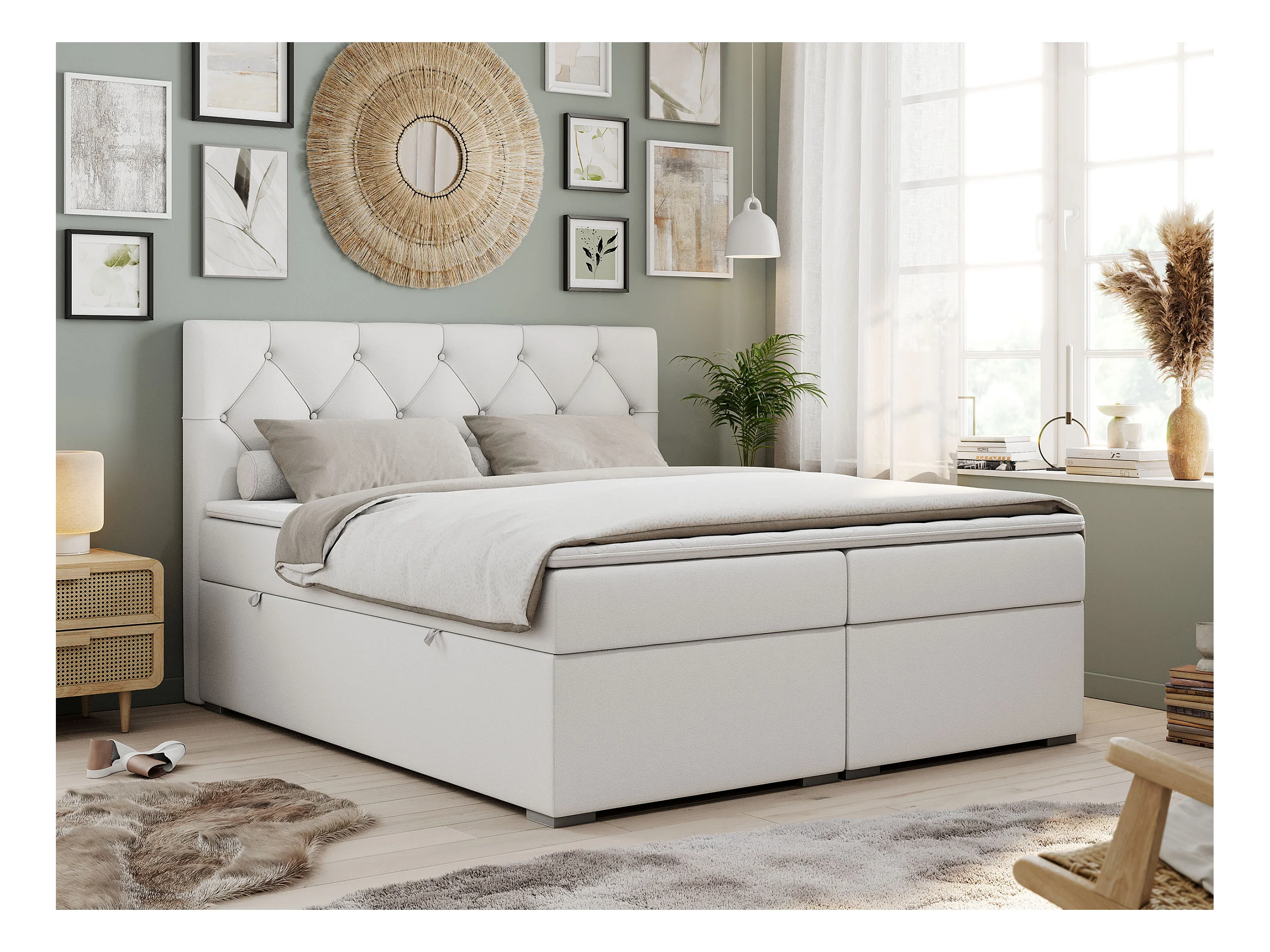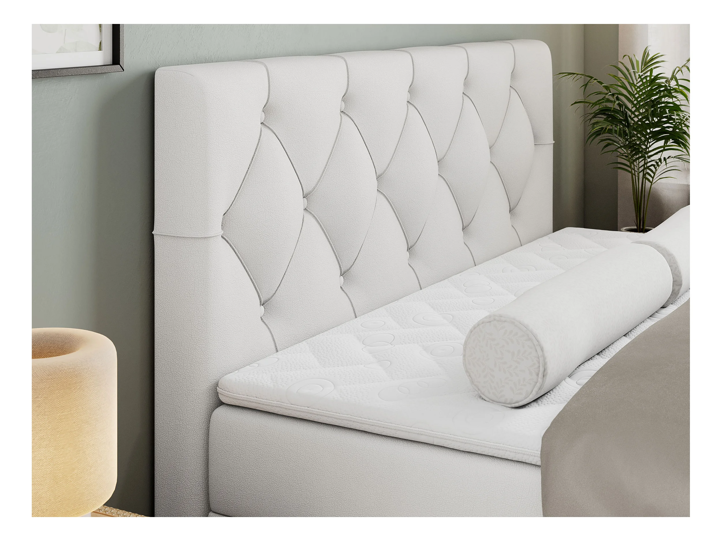 Boxspringbett ALDA - Doppelbett mit gestepptem Kopfteil, Multipocket-Matratze und Topper, zwei Bettkästen - 120x200 cm - H4 - Weiß Kunstleder