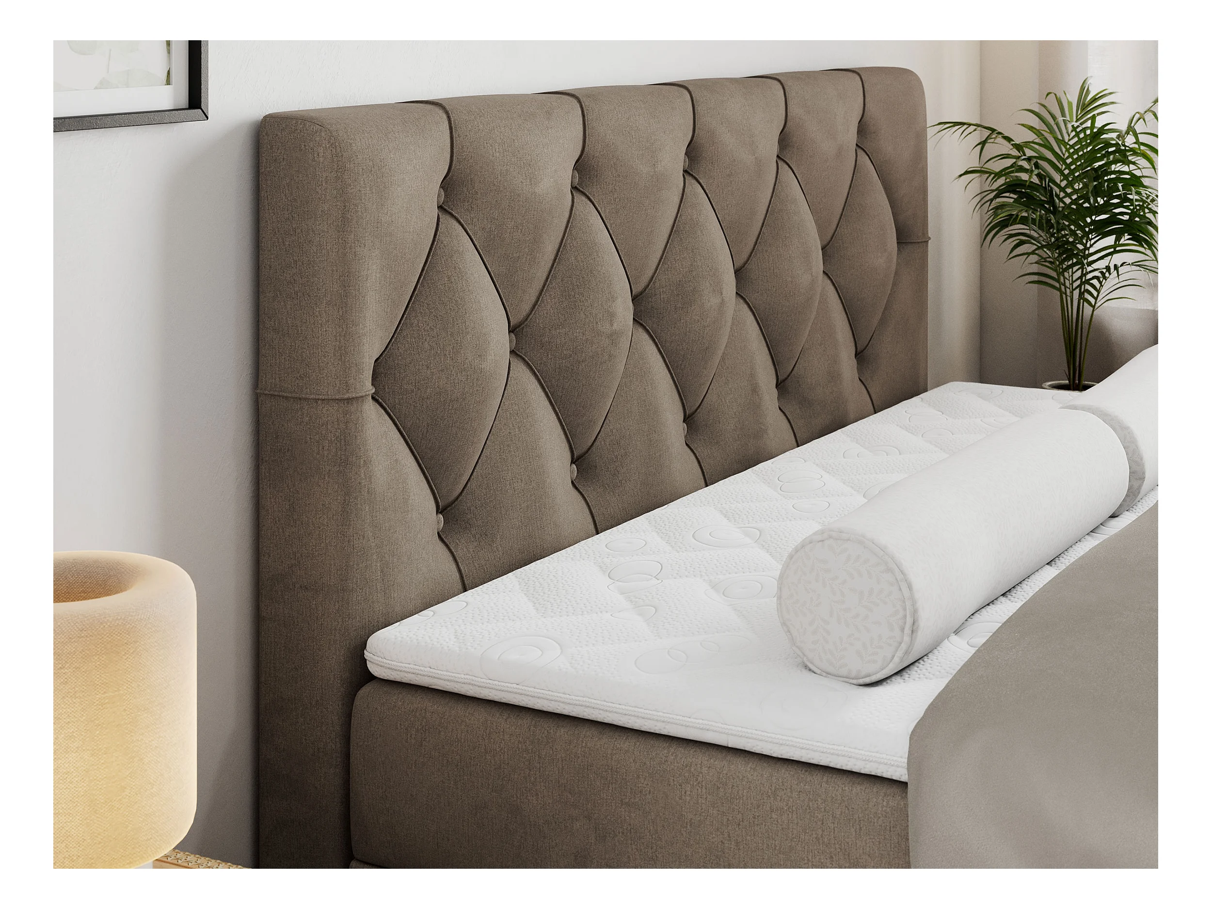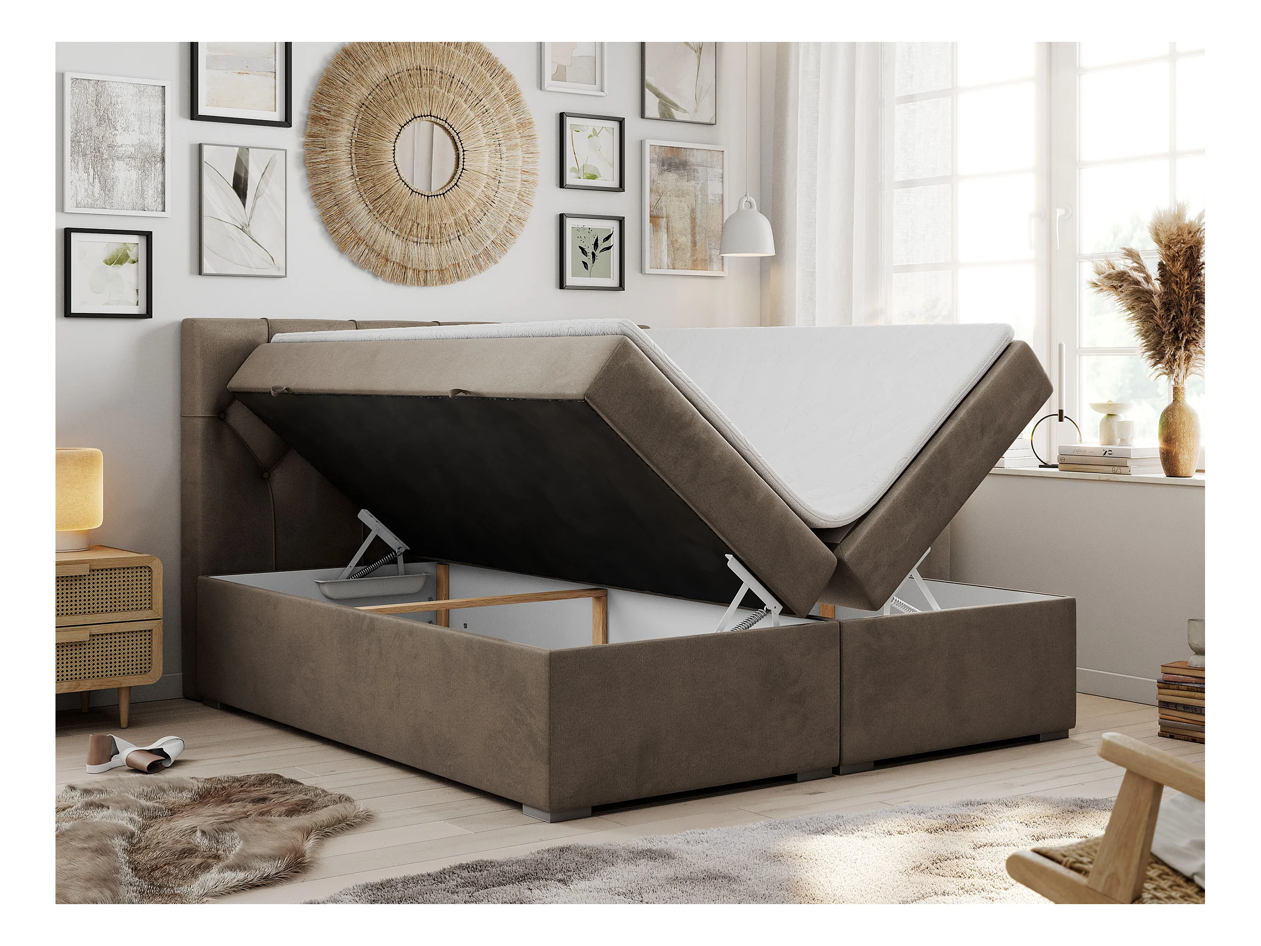 Boxspringbett ALDA - Doppelbett mit gestepptem Kopfteil, Multipocket-Matratze und Topper, zwei Bettkästen - 160x200 cm - H3 - Braun Velvet