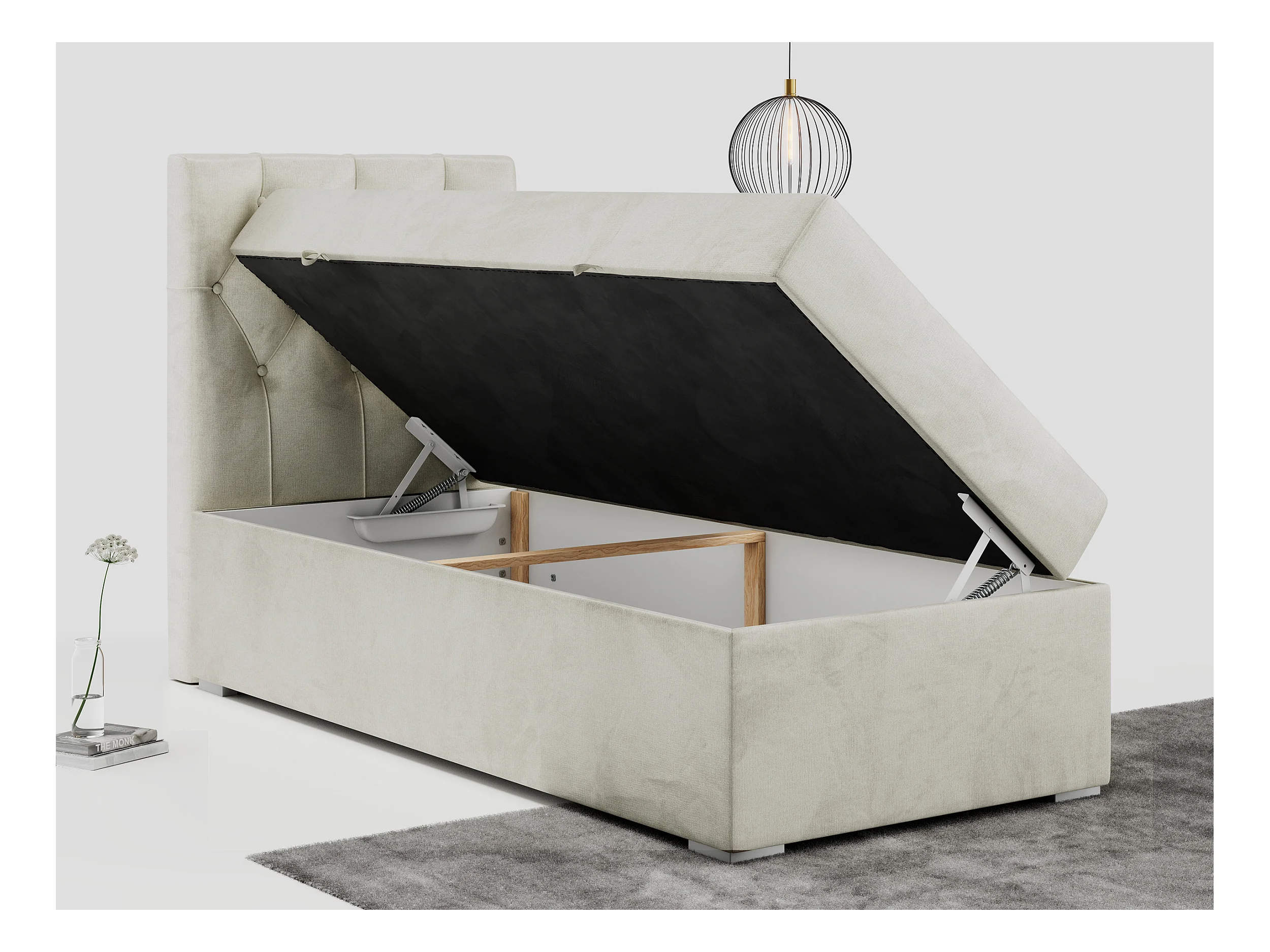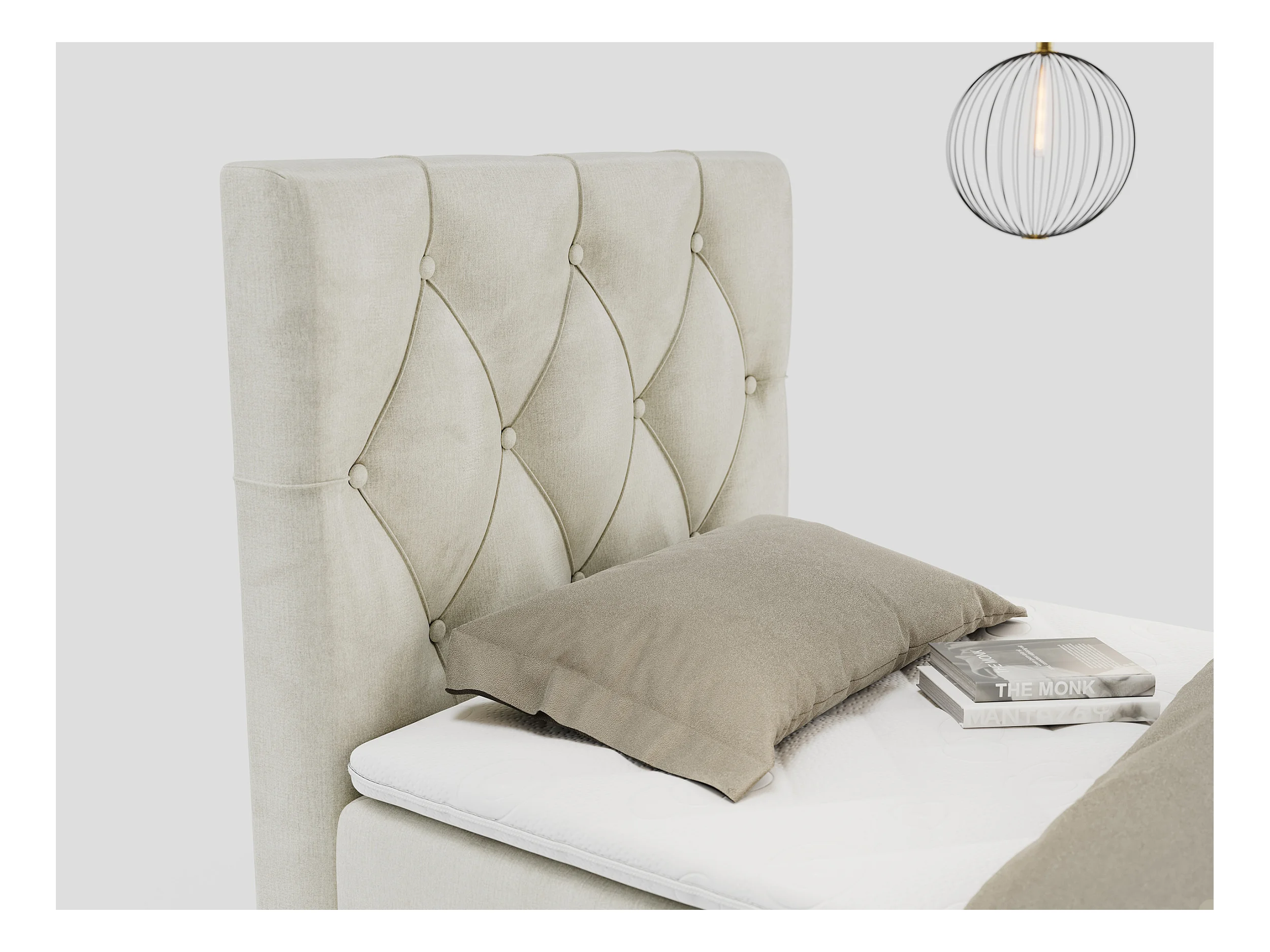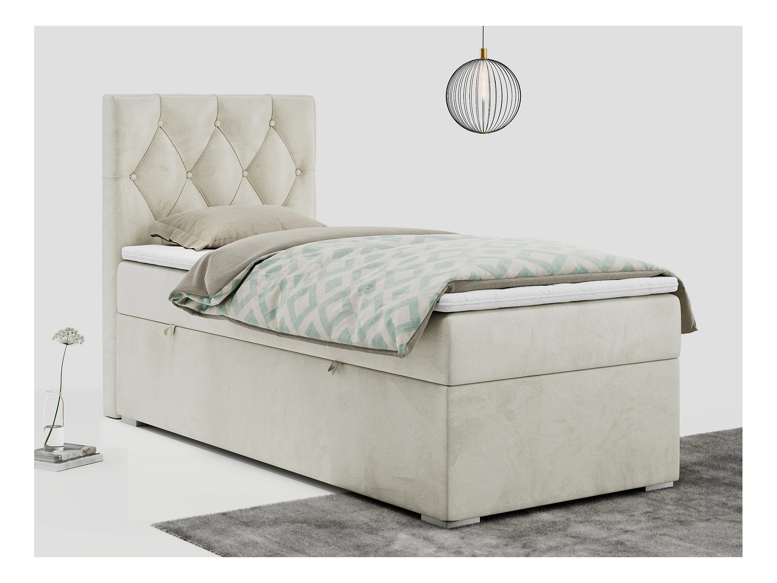 Boxspringbett ALDA - Einzelbett mit gestepptem Kopfteil, Multipocket-Matratze und Topper, Bettkasten - 90x200 cm - H3 - Beige Velvet - Links Seite
