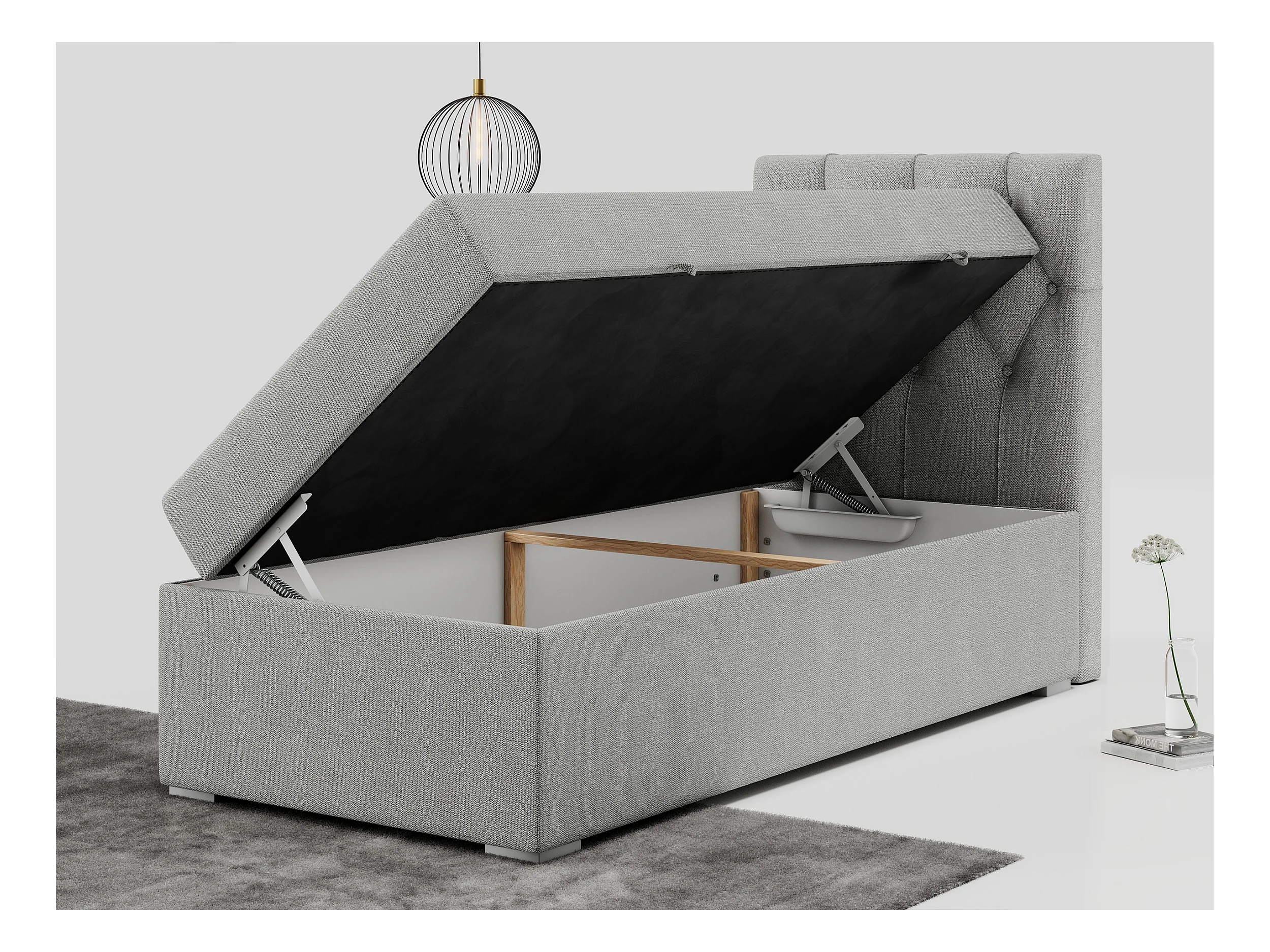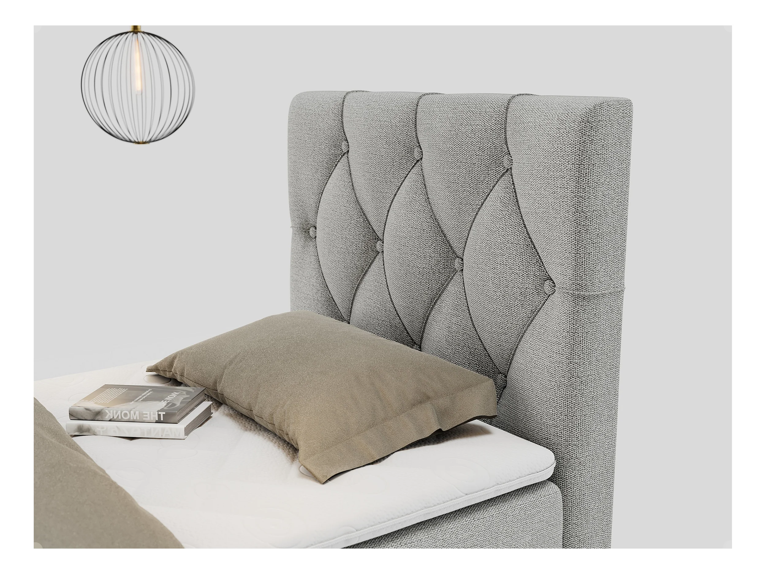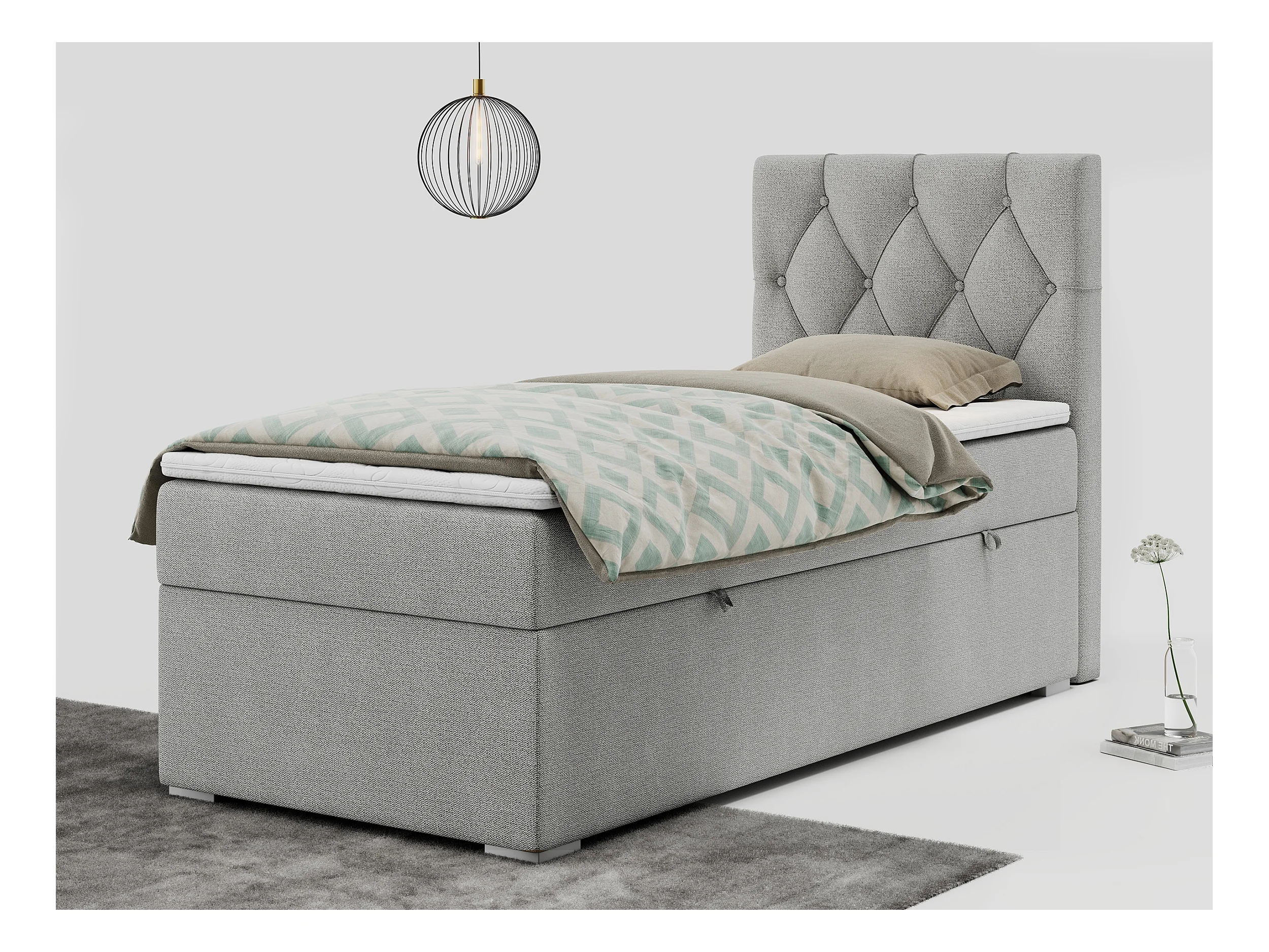 Boxspringbett ALDA - Einzelbett mit gestepptem Kopfteil, Multipocket-Matratze und Topper, Bettkasten - 90x200 cm - H3 - Hellgrau Strukture - Rechts Seite