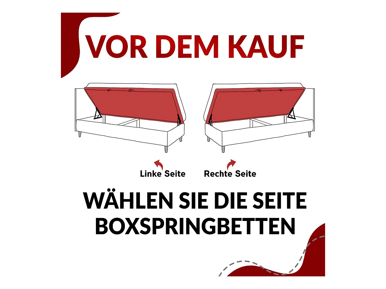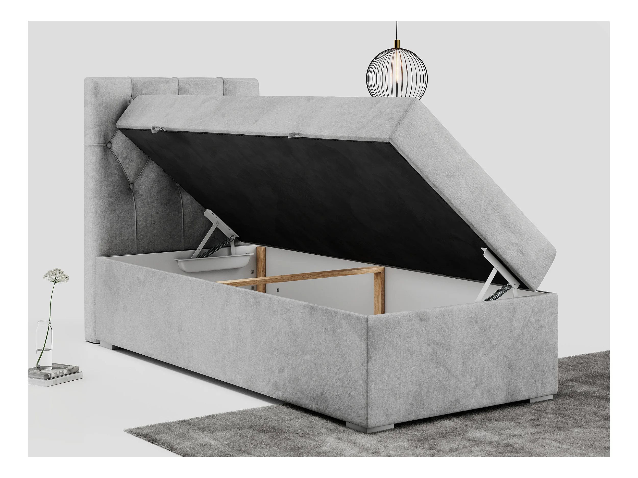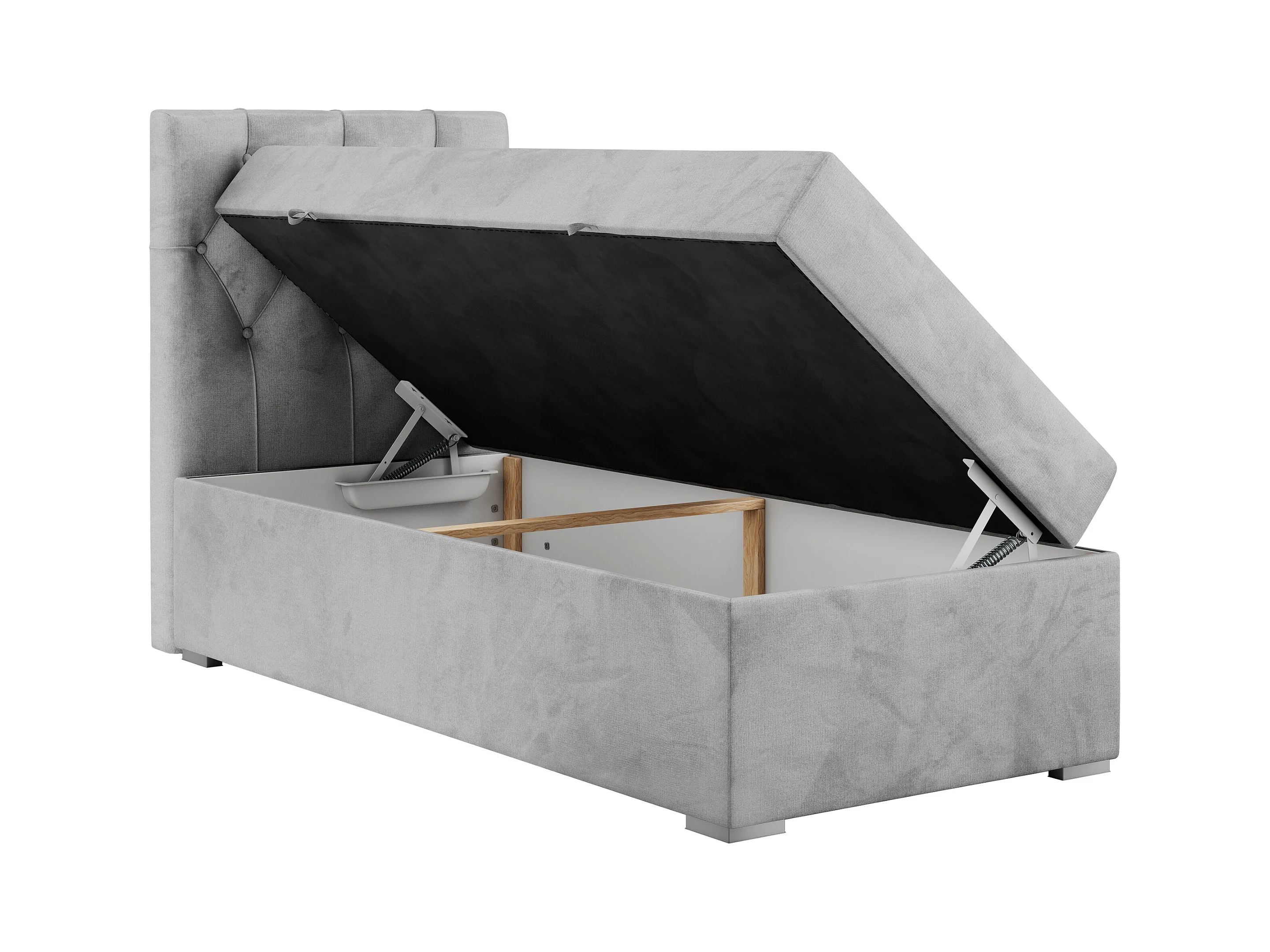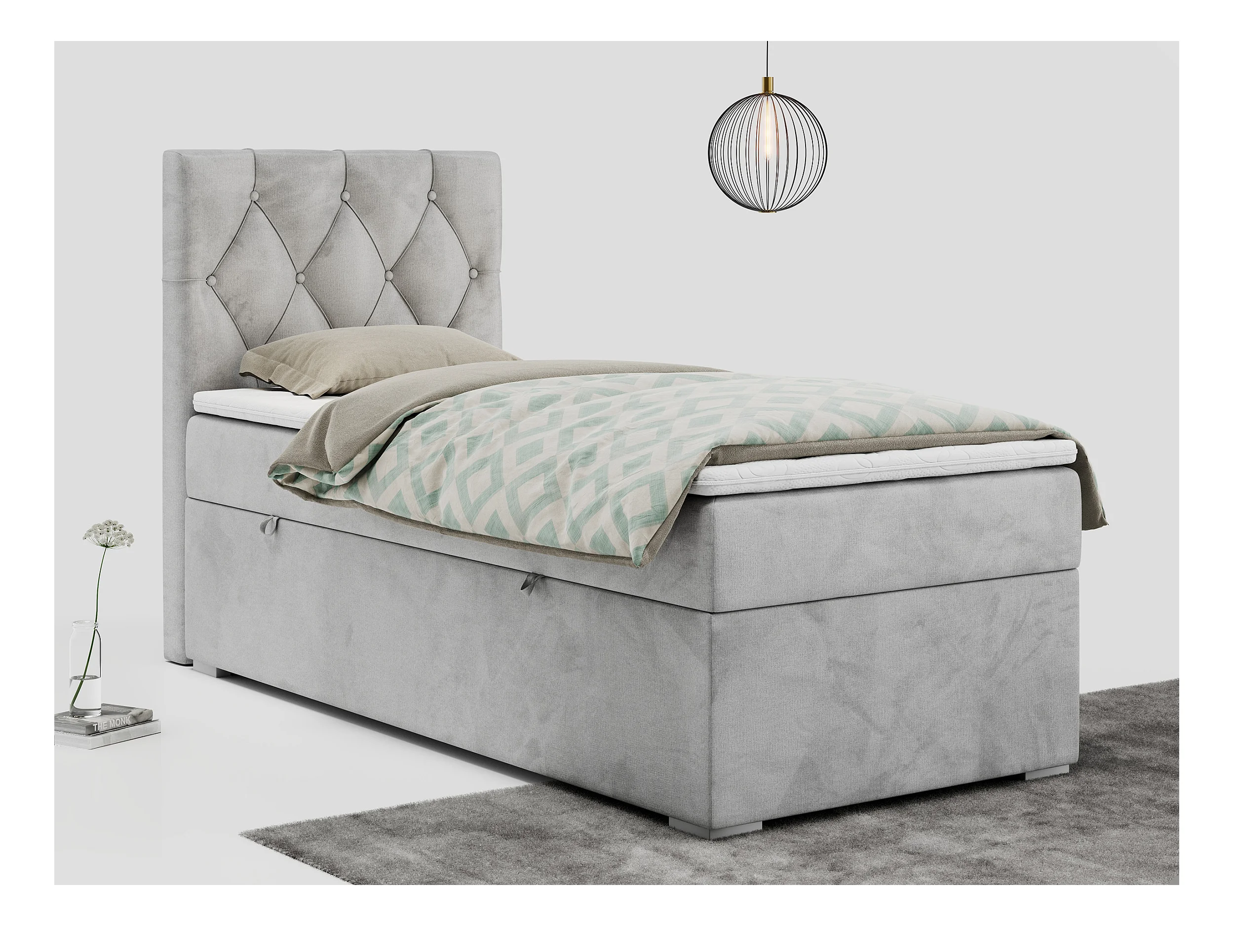 Boxspringbett ALDA - Einzelbett mit gestepptem Kopfteil, Multipocket-Matratze und Topper, Bettkasten - 90x200 cm - H3 - Hellgrau Velvet - Links Seite