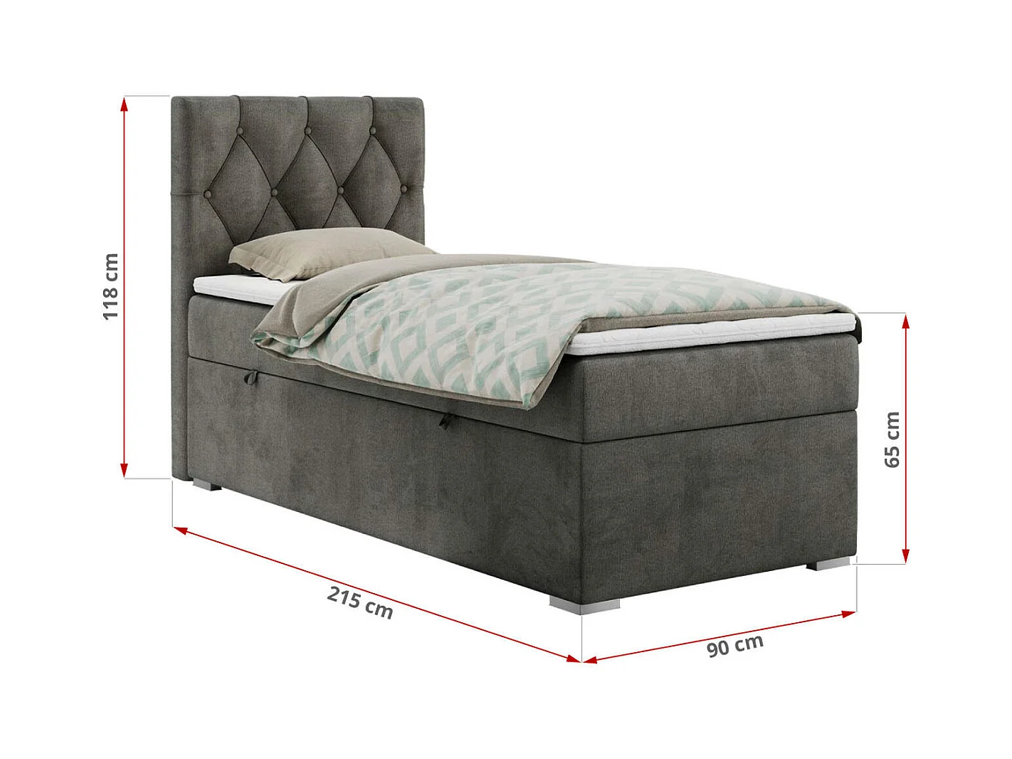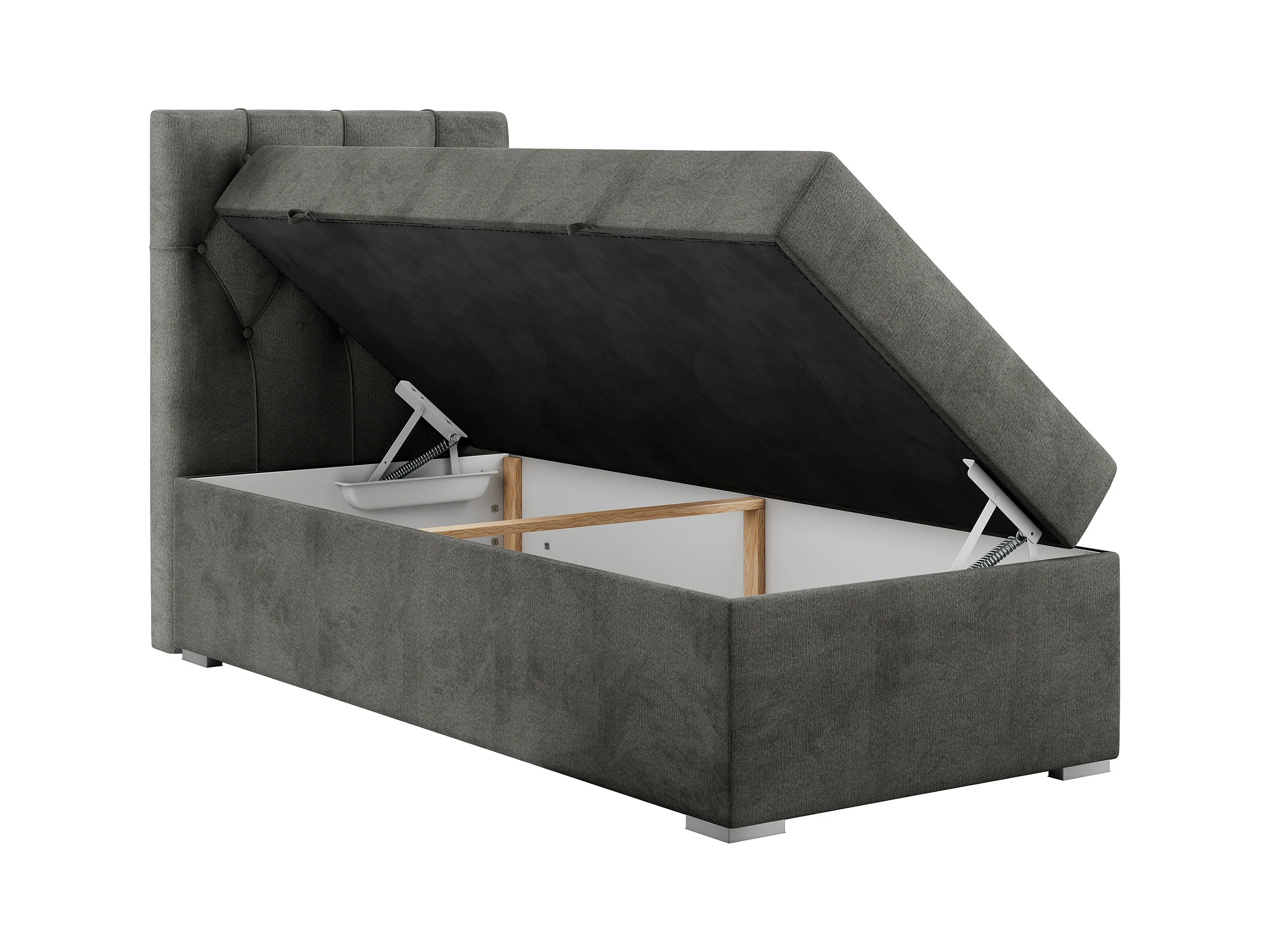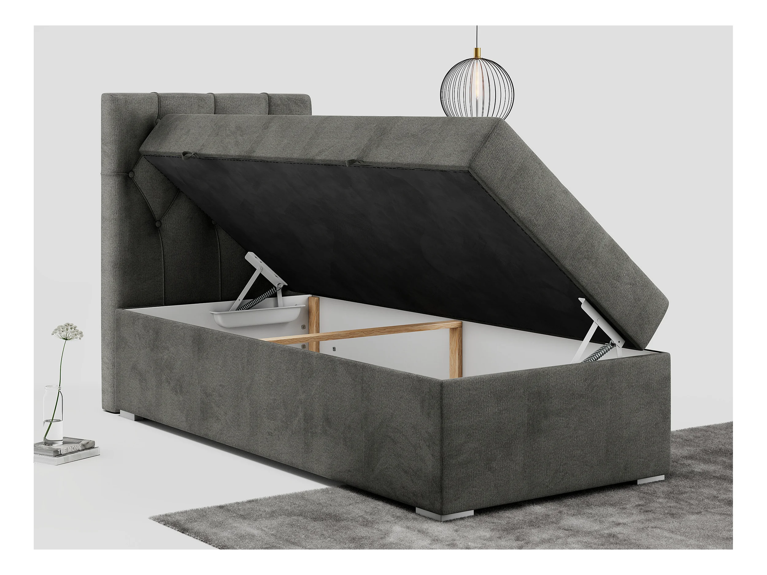 Boxspringbett ALDA - Einzelbett mit gestepptem Kopfteil, Multipocket-Matratze und Topper, Bettkasten - 90x200 cm - H4 - Dunkelgrau Velvet - Links Seite