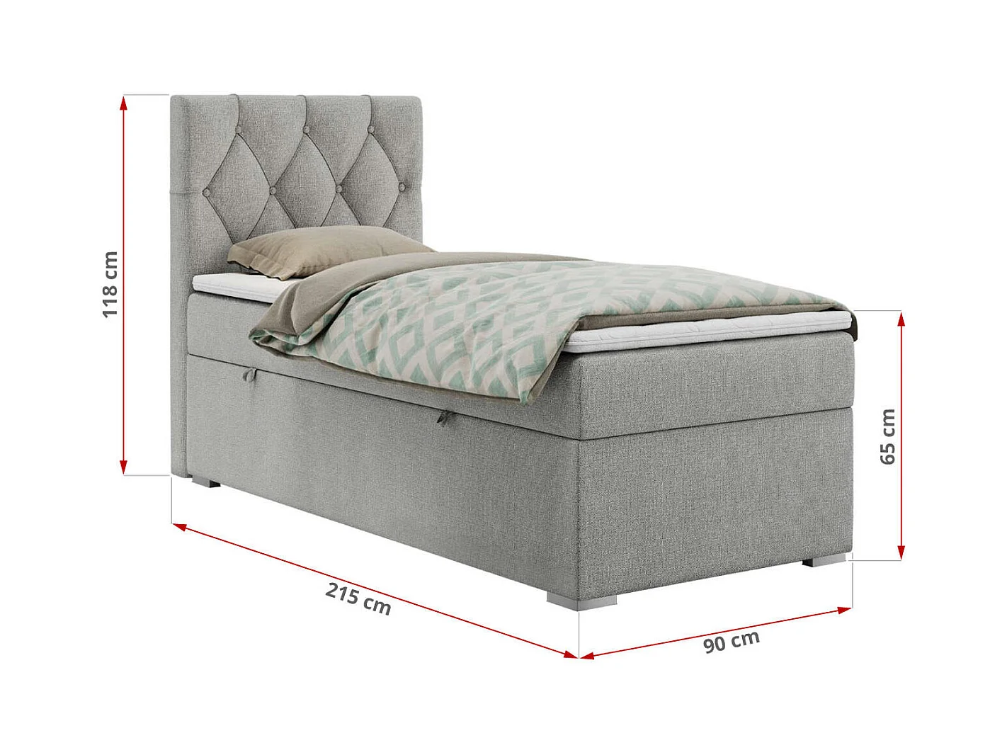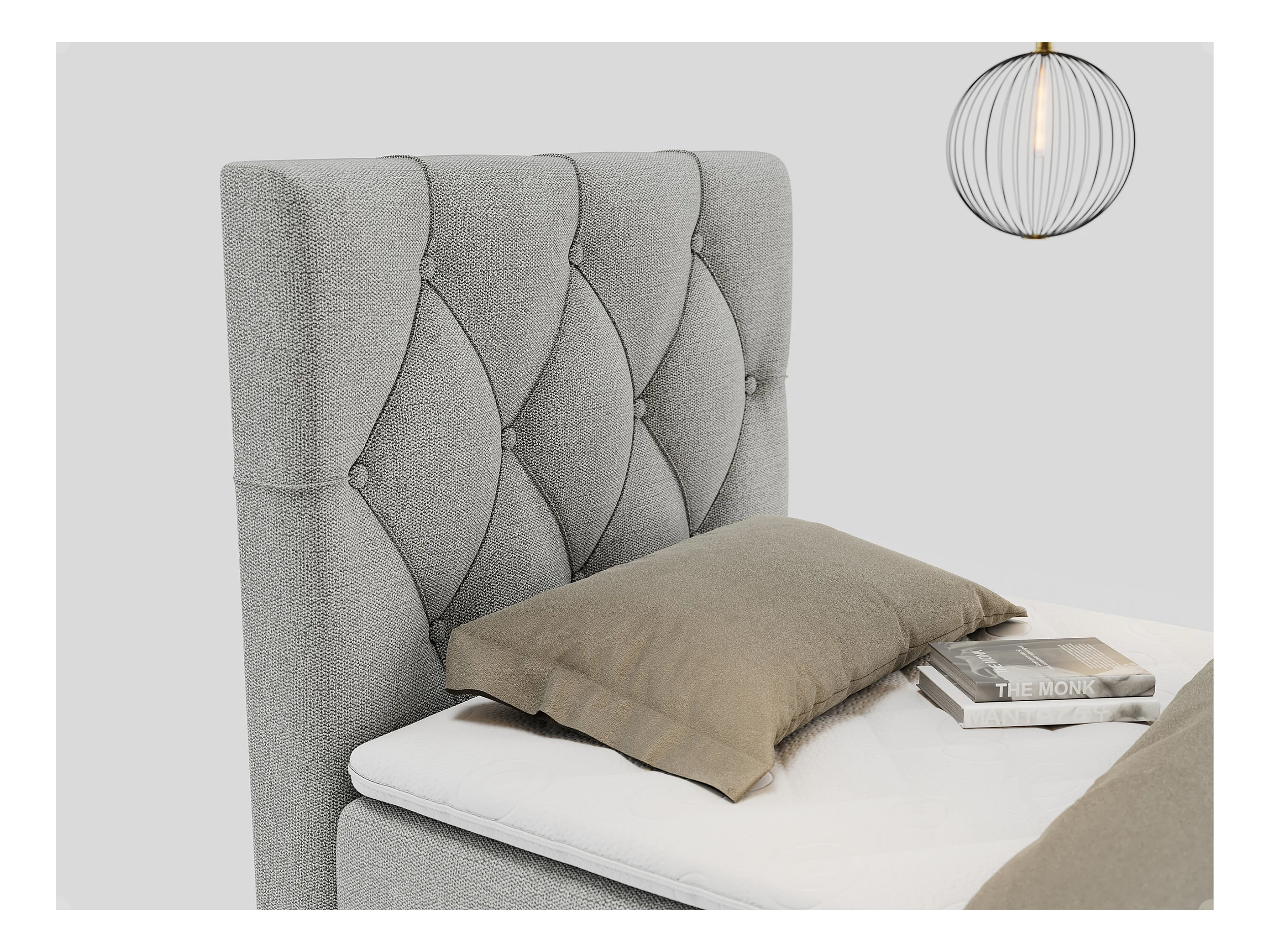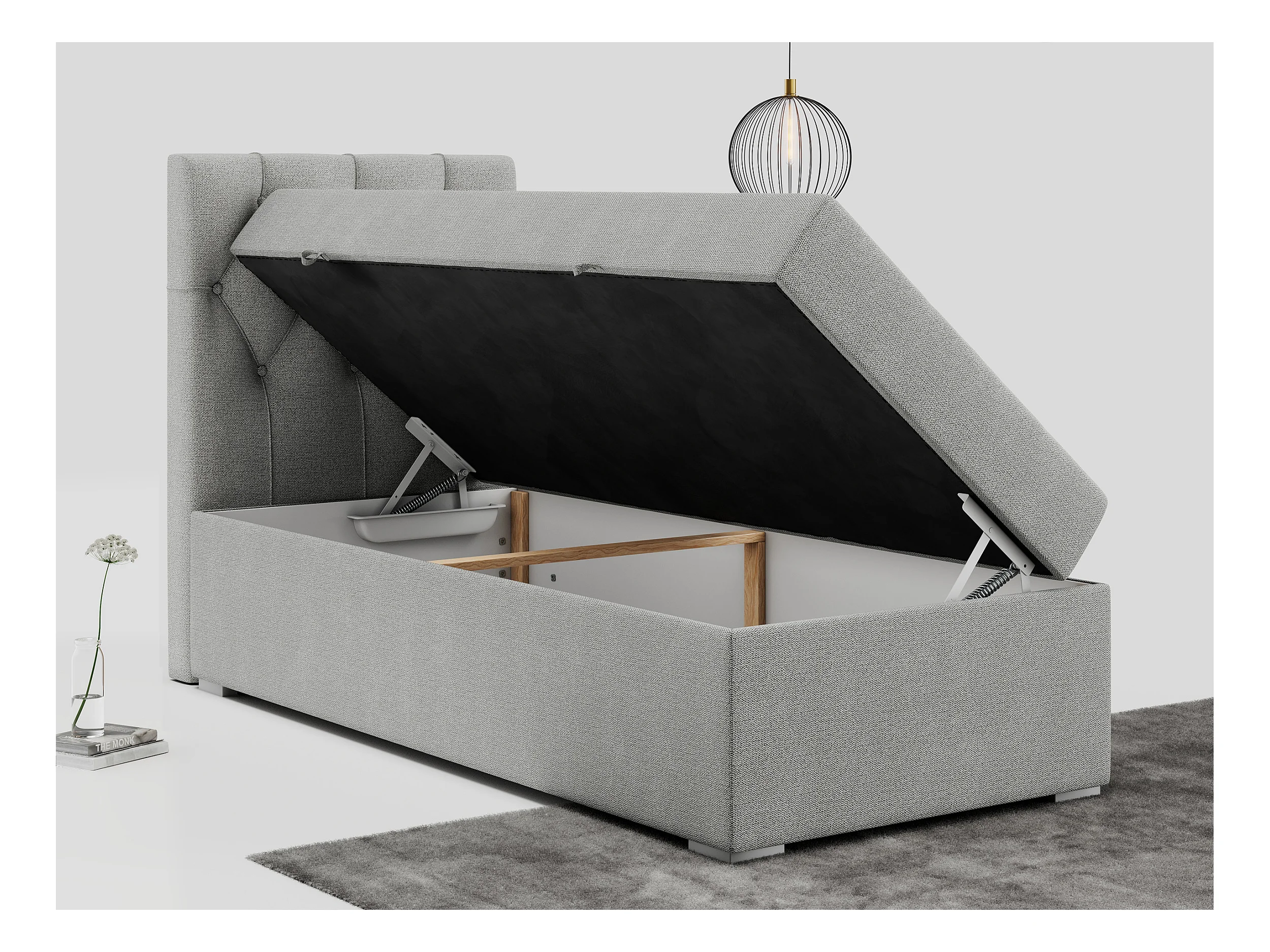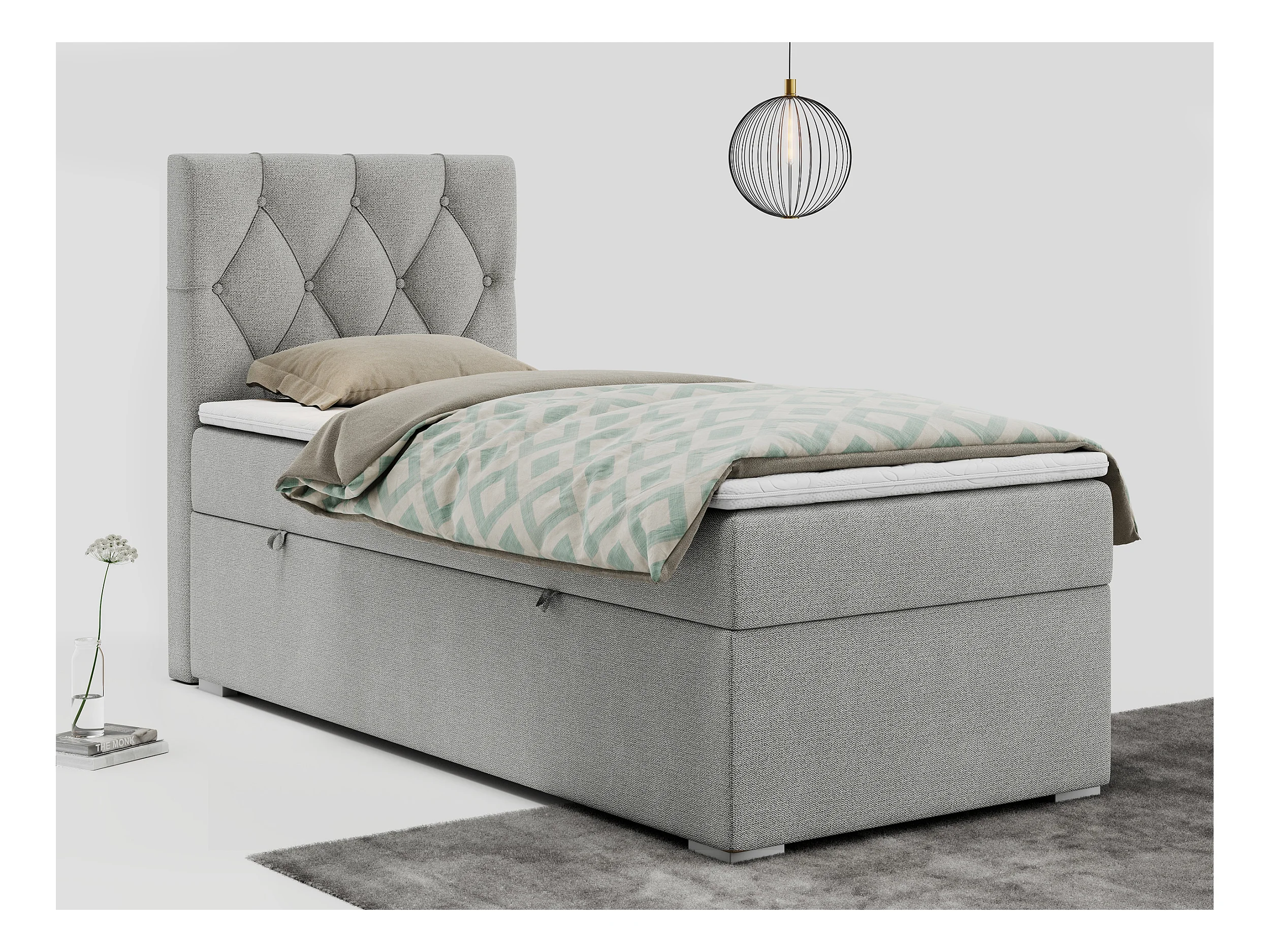 Boxspringbett ALDA - Einzelbett mit gestepptem Kopfteil, Multipocket-Matratze und Topper, Bettkasten - 90x200 cm - H4 - Hellgrau Strukture - Links Seite
