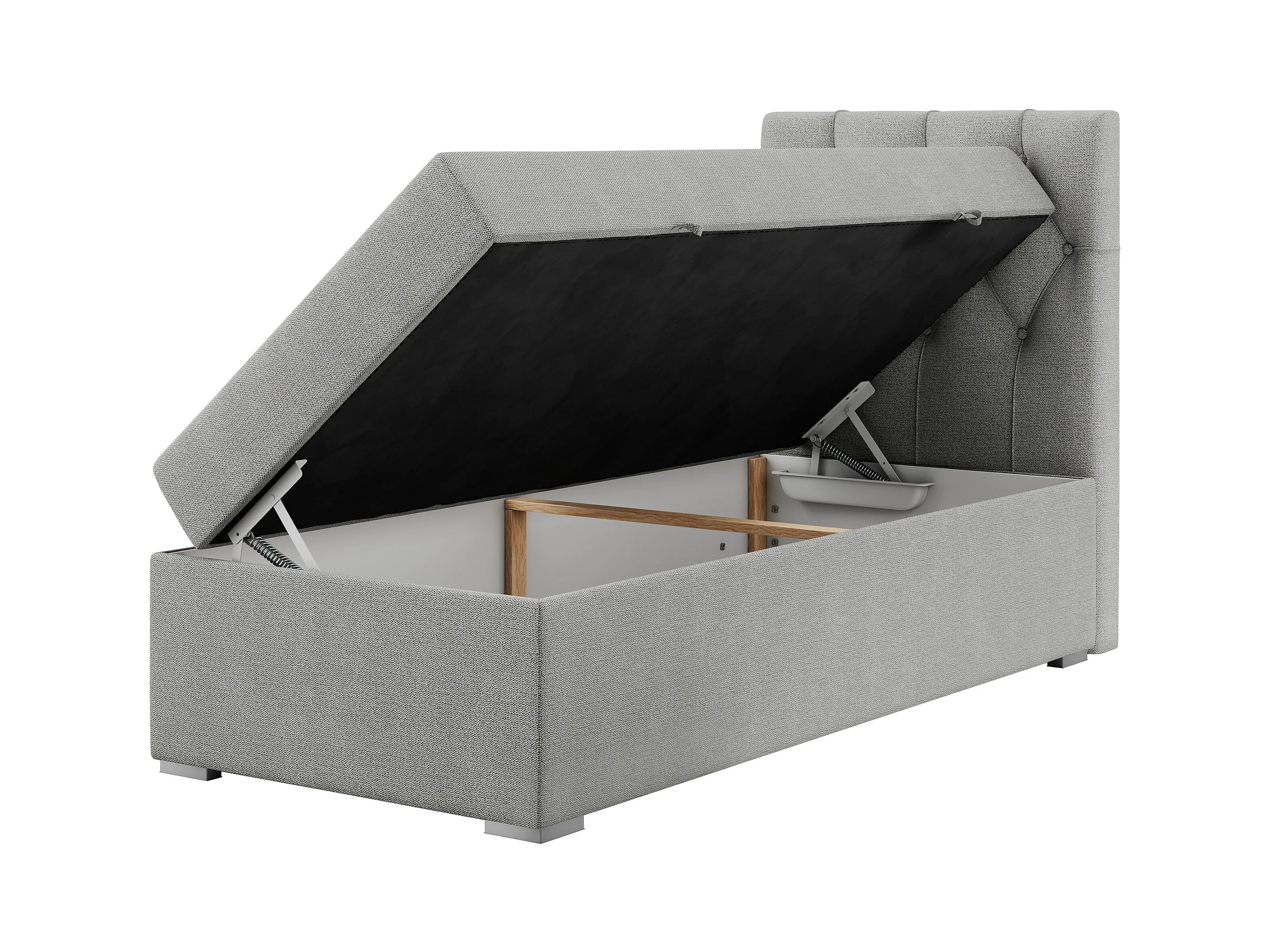 Boxspringbett ALDA - Einzelbett mit gestepptem Kopfteil, Multipocket-Matratze und Topper, Bettkasten - 90x200 cm - H4 - Hellgrau Strukture - Rechts Seite