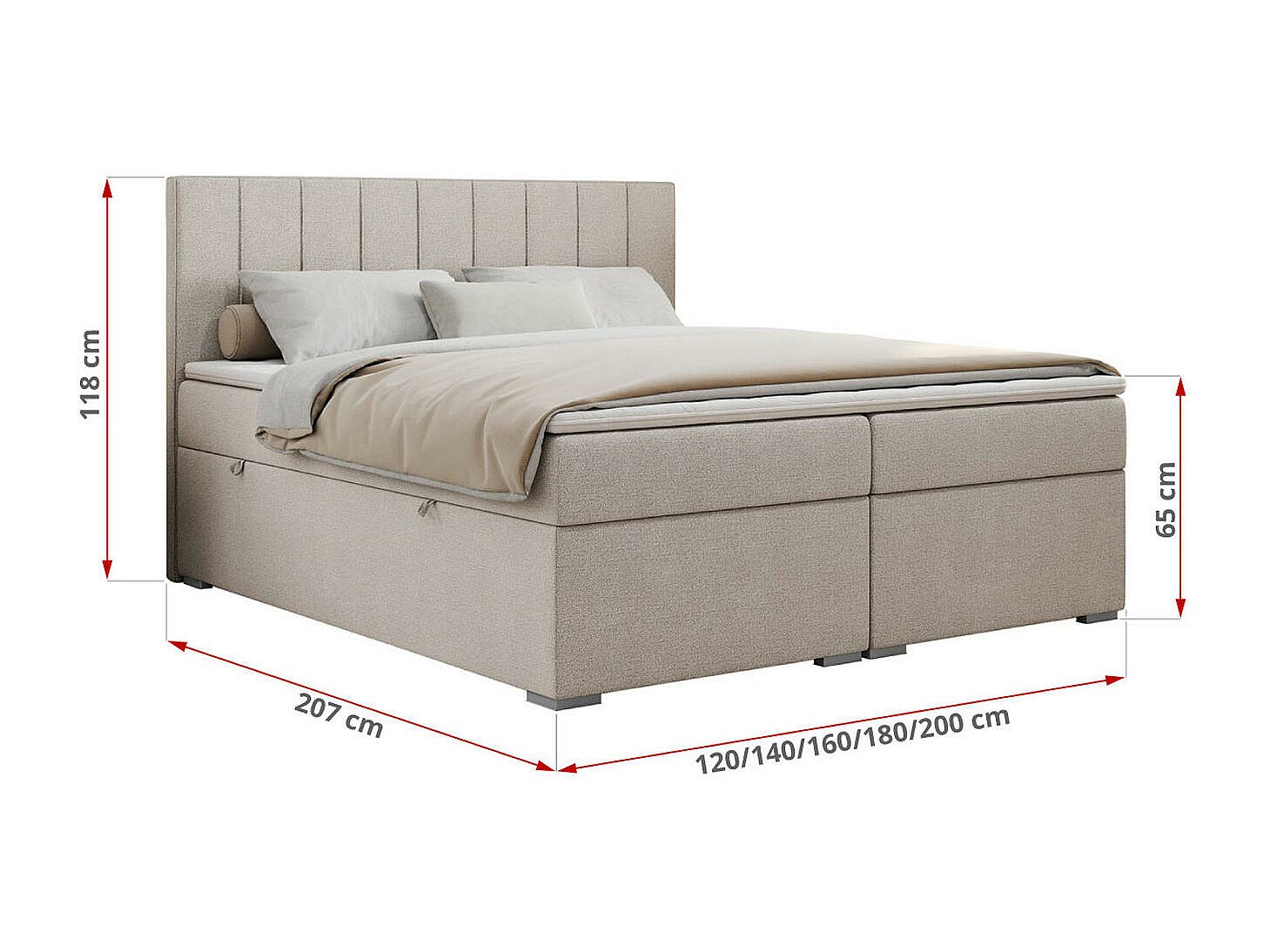 Boxspringbett ALLY - gestreiftes, genähtes Kopfteil, zwei Bettkästen, Multipocket-Matratzen, Praktisch Polsterbett - 120x200 cm - H3 - Beige Strukture